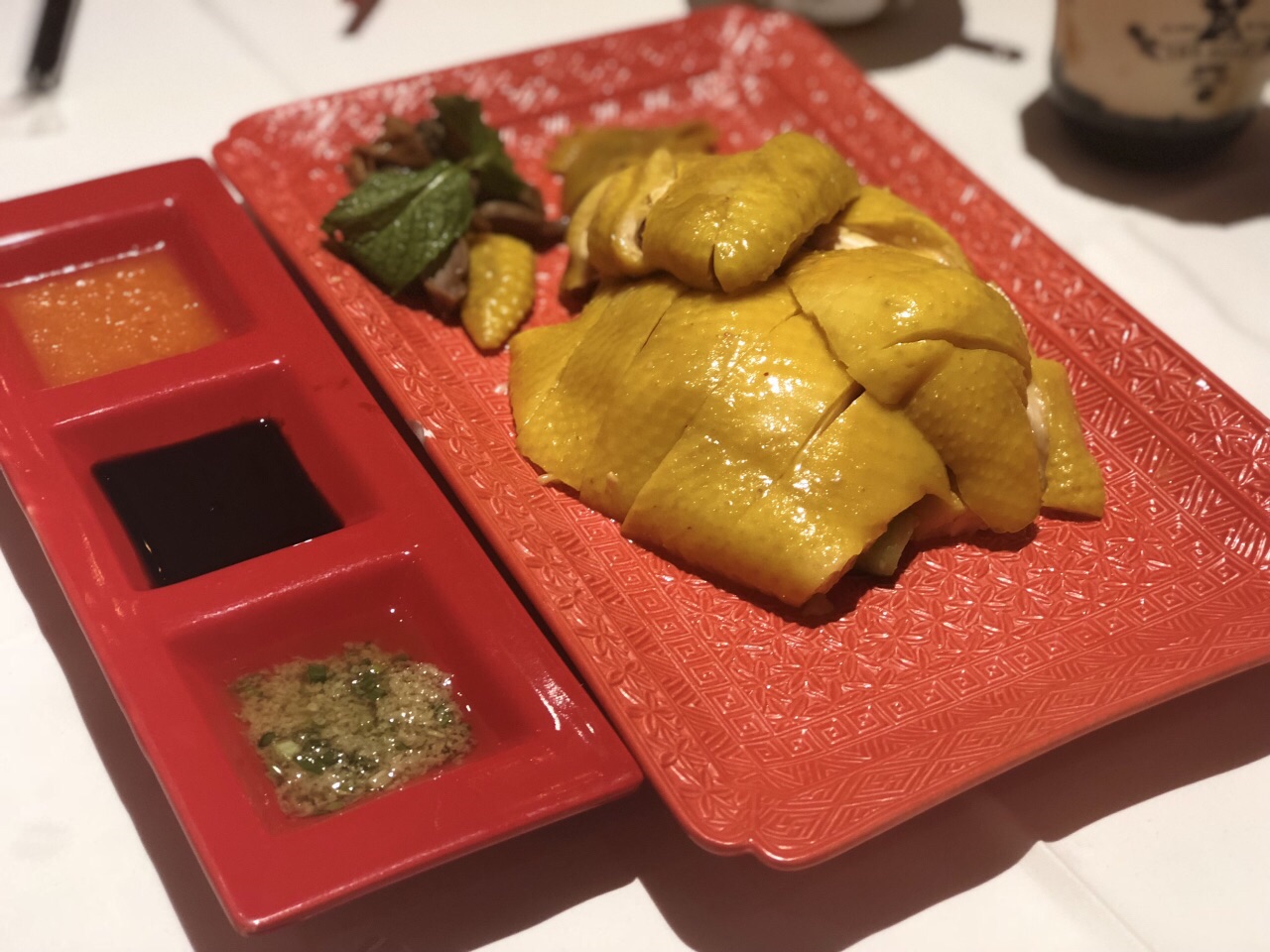 大土即是大洋,红红火火很喜庆,之前看一个吃货在朋友圈晒的东西,就想去拔草终于找到机会了,平时排队也很厉害,选择工作日去拔草,11点开始放号,要人齐了才可以进去,用餐时间1个半小时,不过我们还算迅速,点了招牌海南鸡还有鸡油饭,真是灵魂之饭很好吃的说,菠萝古老肉一般,下次来试试其他的基本45分钟就可以吃完。