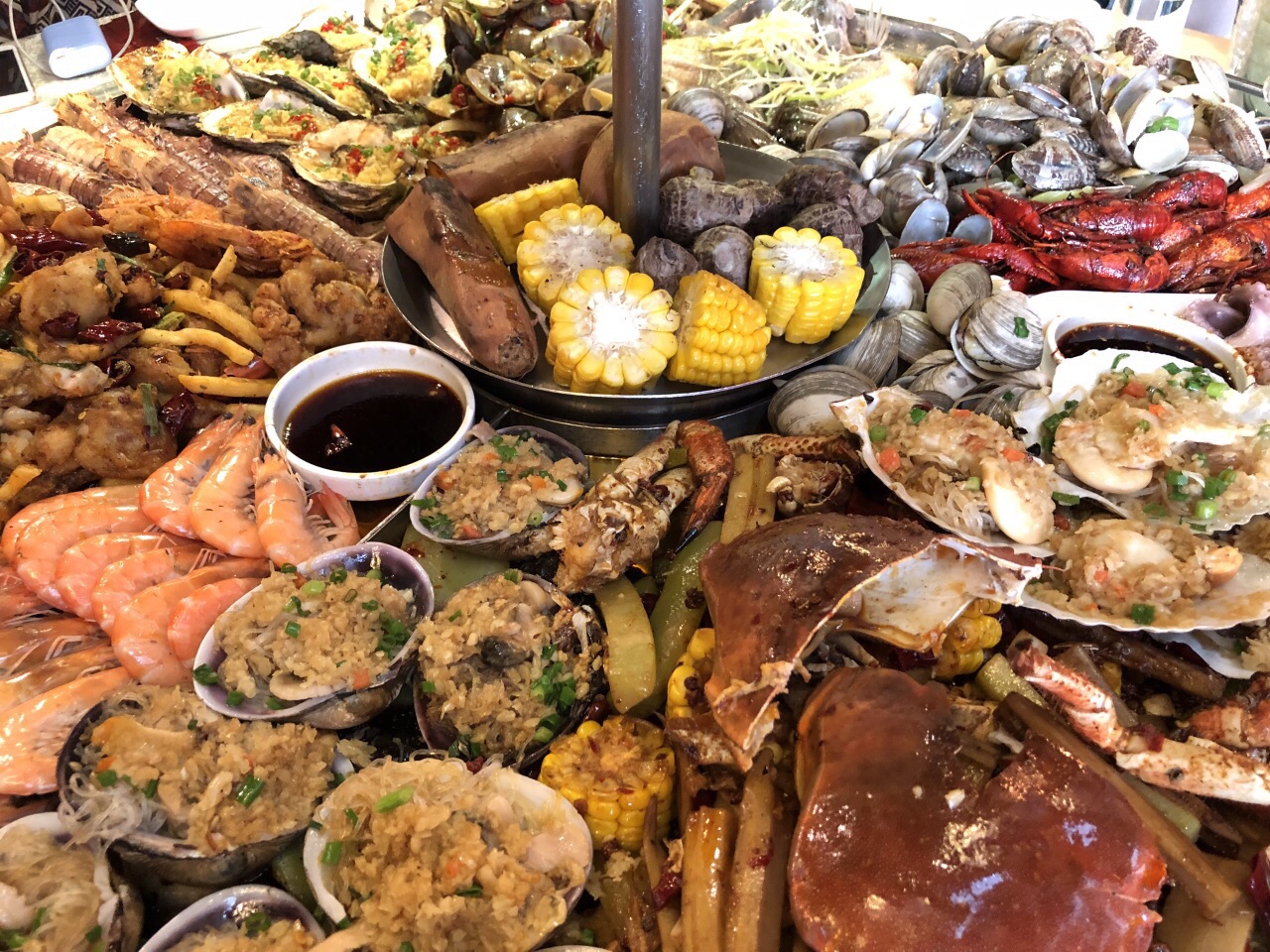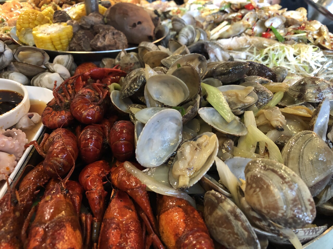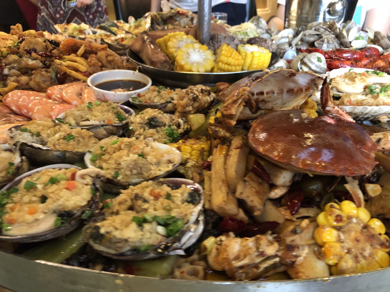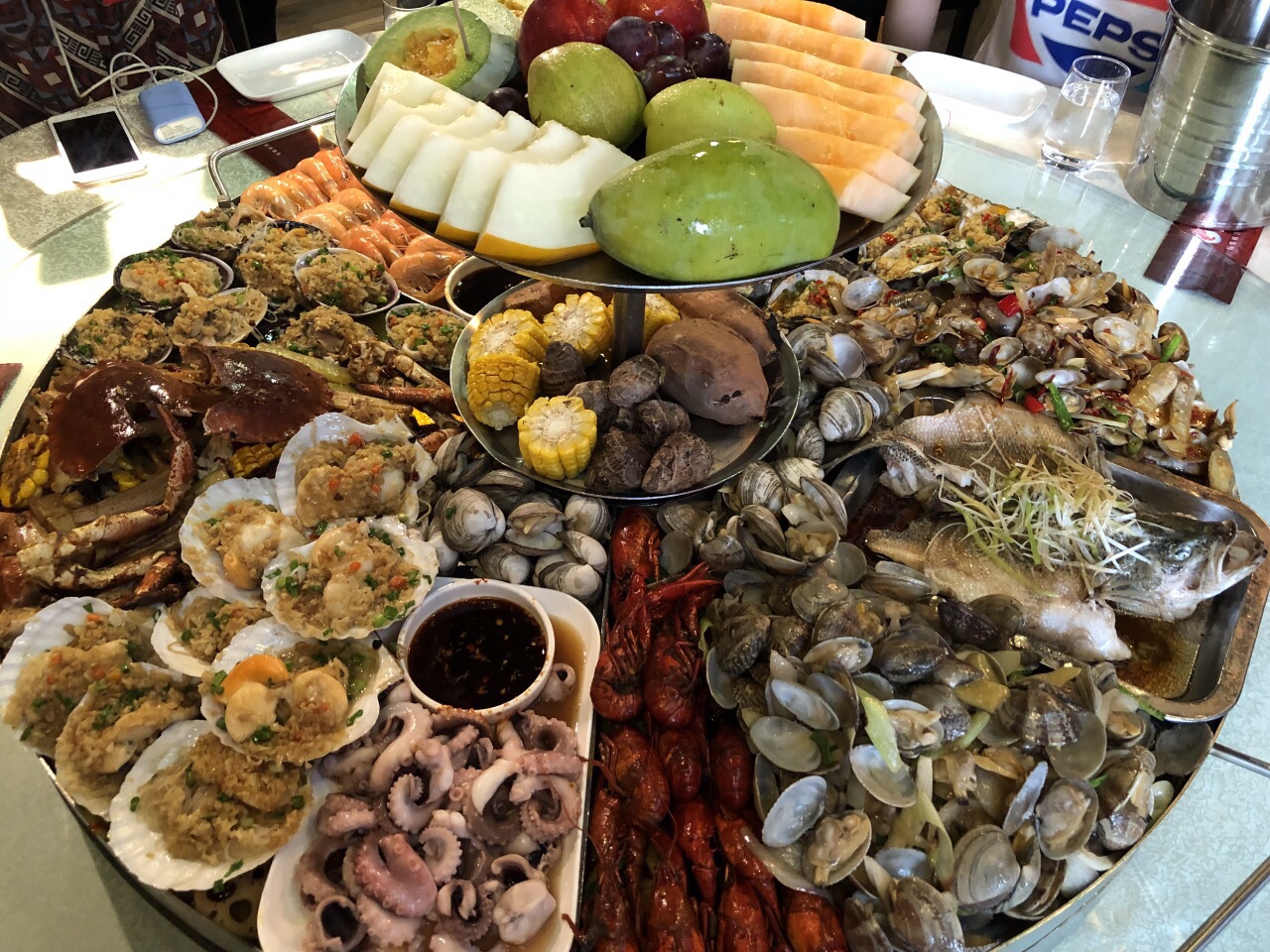 马上毕业,聚会选择了这里,一片海很是壮观,味道还行,感觉是一盘巨大的海鲜香锅,推荐小麻花哈哈~性价比也就那样吧差不多,吃的是颜值和氛围,拍照还是很好看的~之前询问是否有包间的时候似乎气到小伙伴了,服务凑合吧后面也没什么特别不好的地方。顶上的水果巨难吃。。