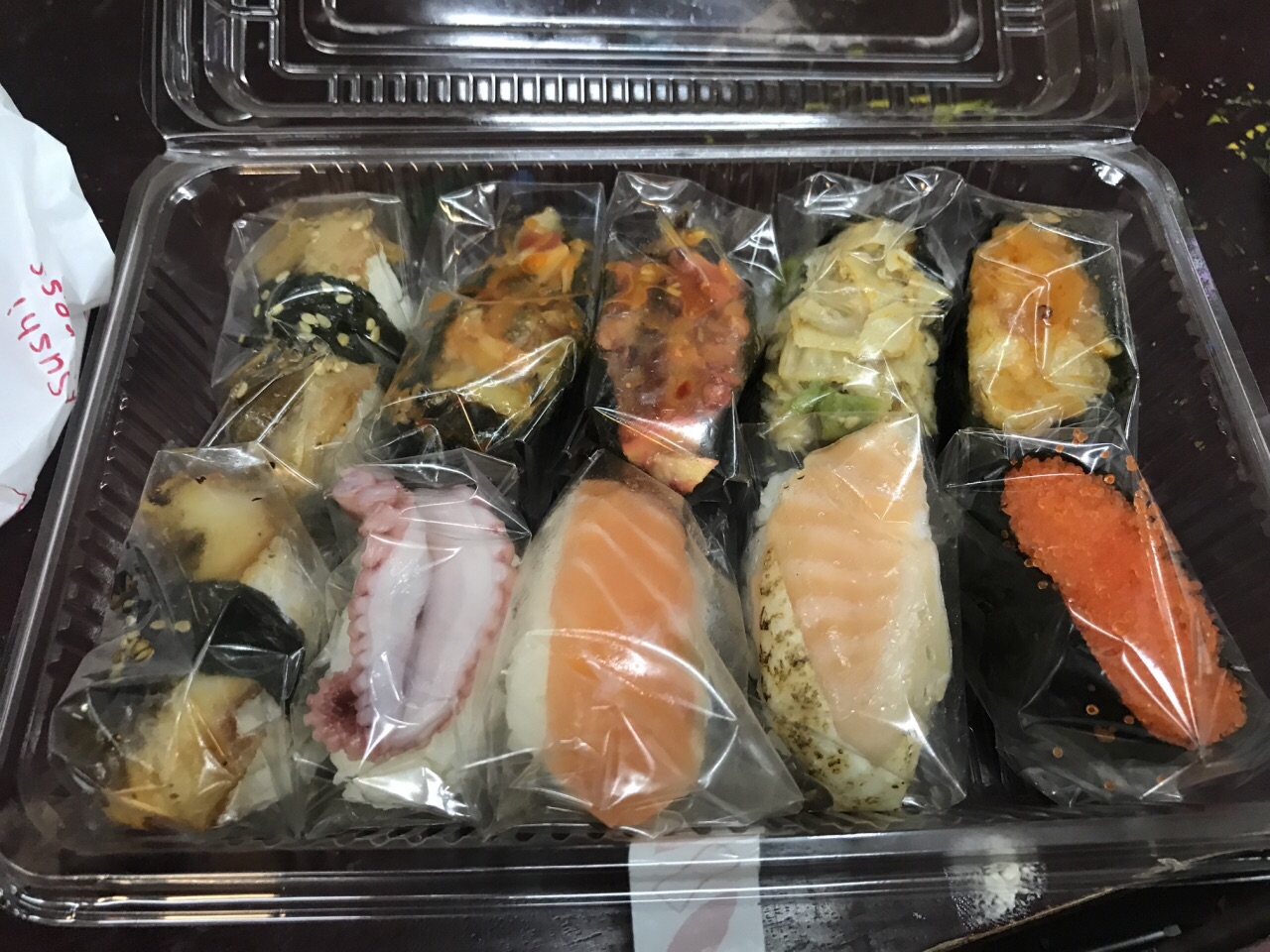 ...的,也可以自己挑选,所有的寿司都是三元一个,香港配送的芥末酱叫黄葵,酱油味道超级鲜甜,非常好吃外带回家自己吃,可以选已经拼好的,也可以自己挑选,所有的寿司都是三元一个,香港配送的芥末酱叫黄葵,酱油味道超级鲜甜,非常好吃。