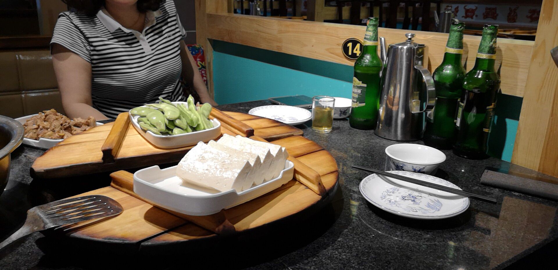 锅味道不错,豆腐豆角都很入味,粉条是点睛,两个凉菜跟啤酒也是绝配听接机司机推荐的,就在中央大街旁边。点了大丰收锅加豆腐粉条,大拉皮和大拌菜,外加哈啤。 锅味道不错,豆腐豆角都很入味,粉条是点睛,两个凉菜跟啤酒也是绝配