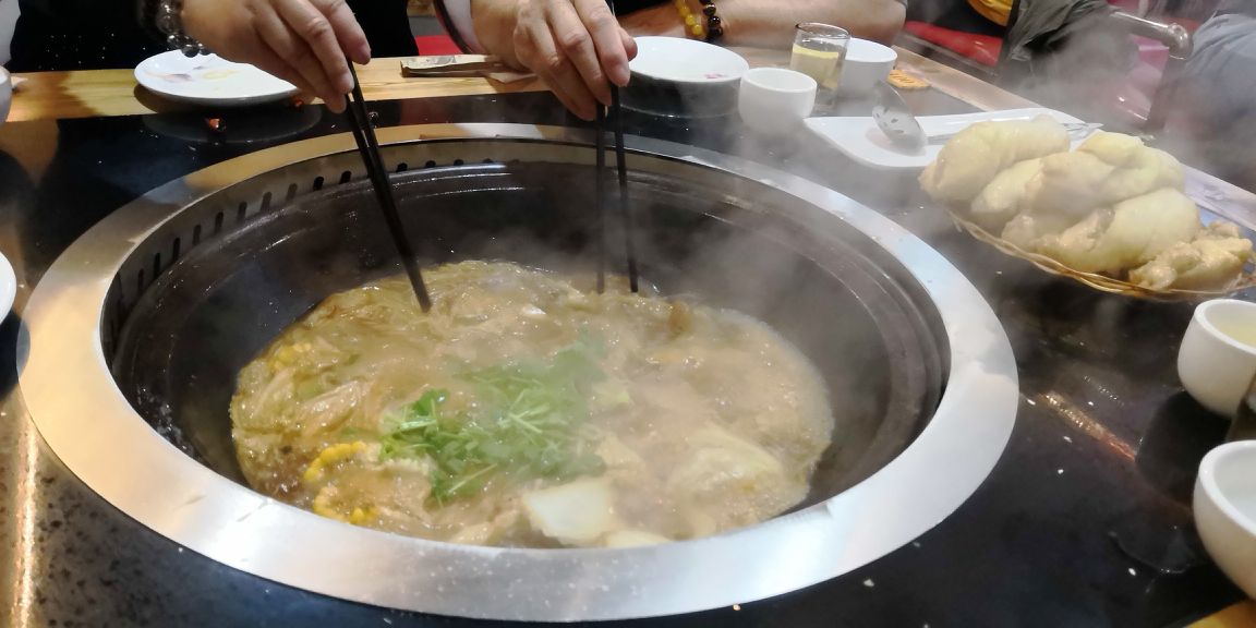 这家铁锅炖很好吃,我们吃的排骨的,配菜有玉米、大白菜、粉条,排骨足足三斤,都是肉排,粉条白菜也好吃,还煮不烂,还有花卷,现蒸的,透着肉香,凉拌干丝味道爽口,一家人很满意。灶台下烧着柴火,没有烟。服务员也个个笑容满面,赞