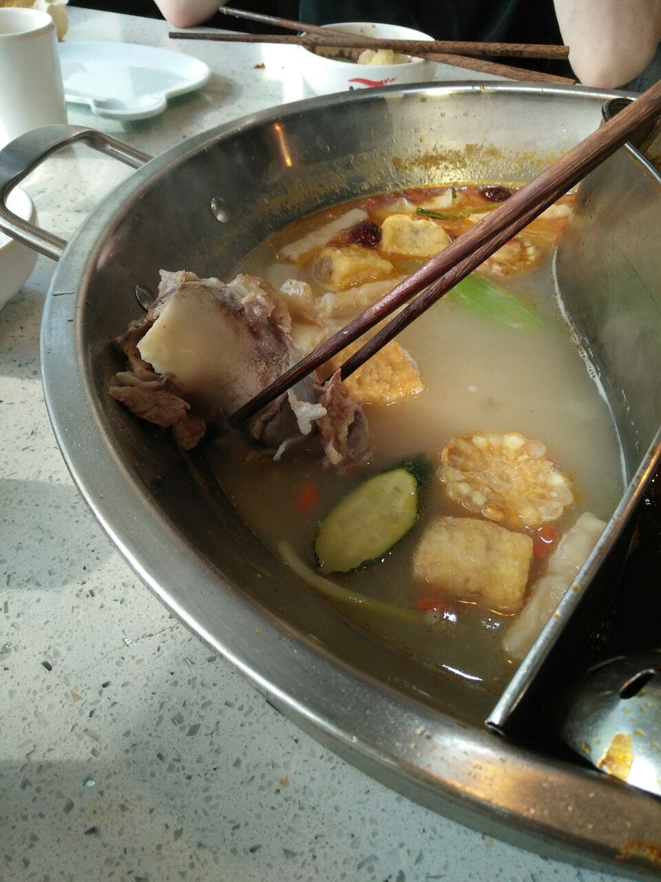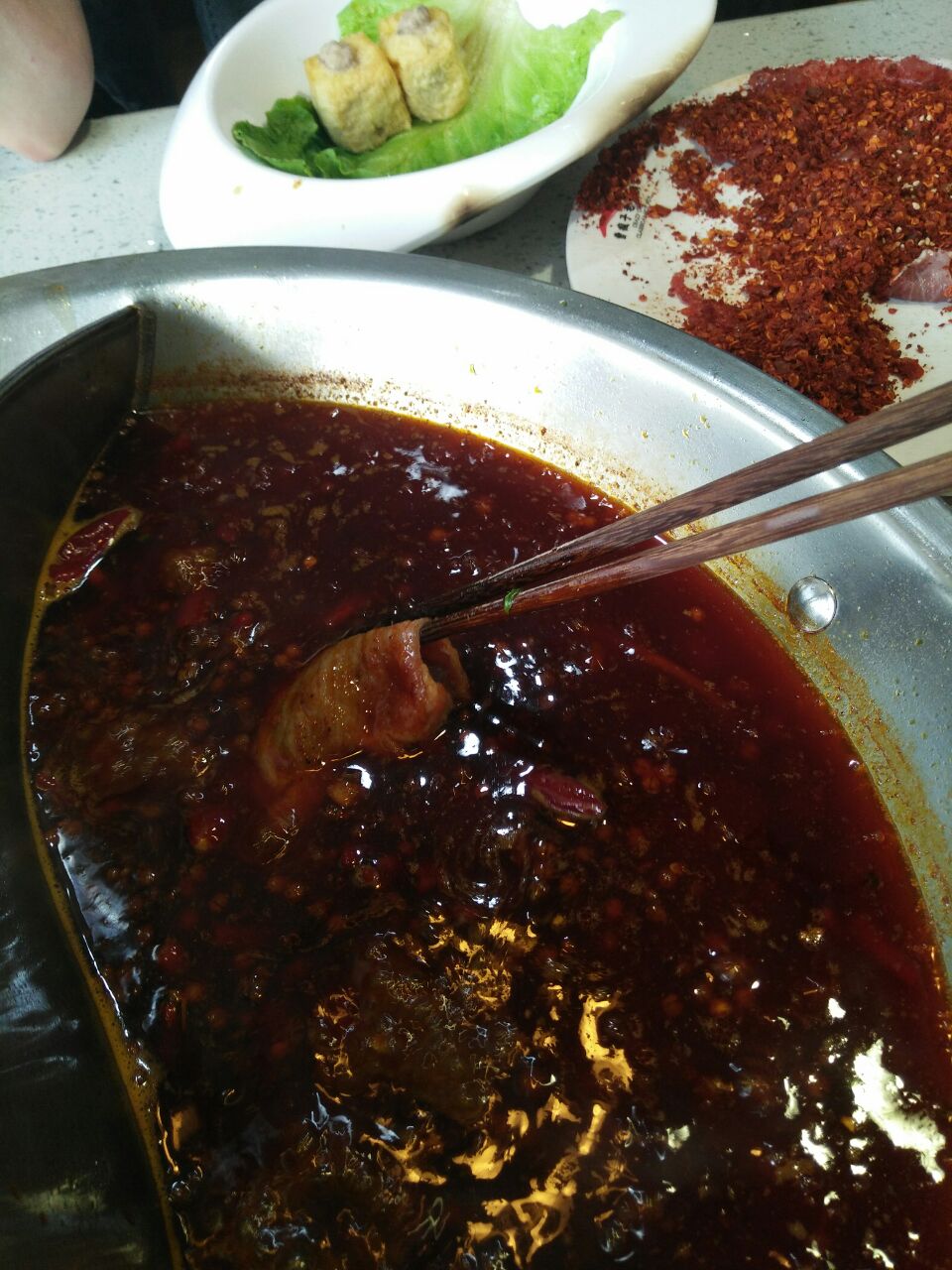 曹疯子火锅,名副其实。麻辣牛肉和酥肉,现在还在回味。服务员热情细心,会主动提示客人小吃免费哦曹疯子火锅,名副其实。店内装饰年轻时尚。服务员热情细心,会主动提示客人小吃免费哦。麻辣牛肉和酥肉,现在还在回味。鸳鸯锅里大骨汤也很不错的。如果你吃不了太辣,就点微微辣锅底。请看图。