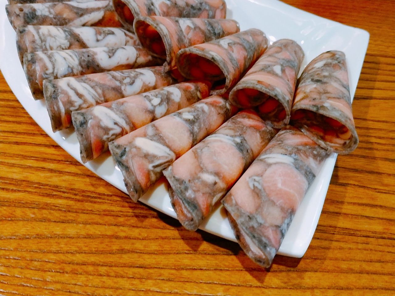 第一次吃到传说中的乌鸡卷,花色挺特别的,口感鲜嫩润滑。自助调理可以选择的余地很大,种类丰富,6元一人