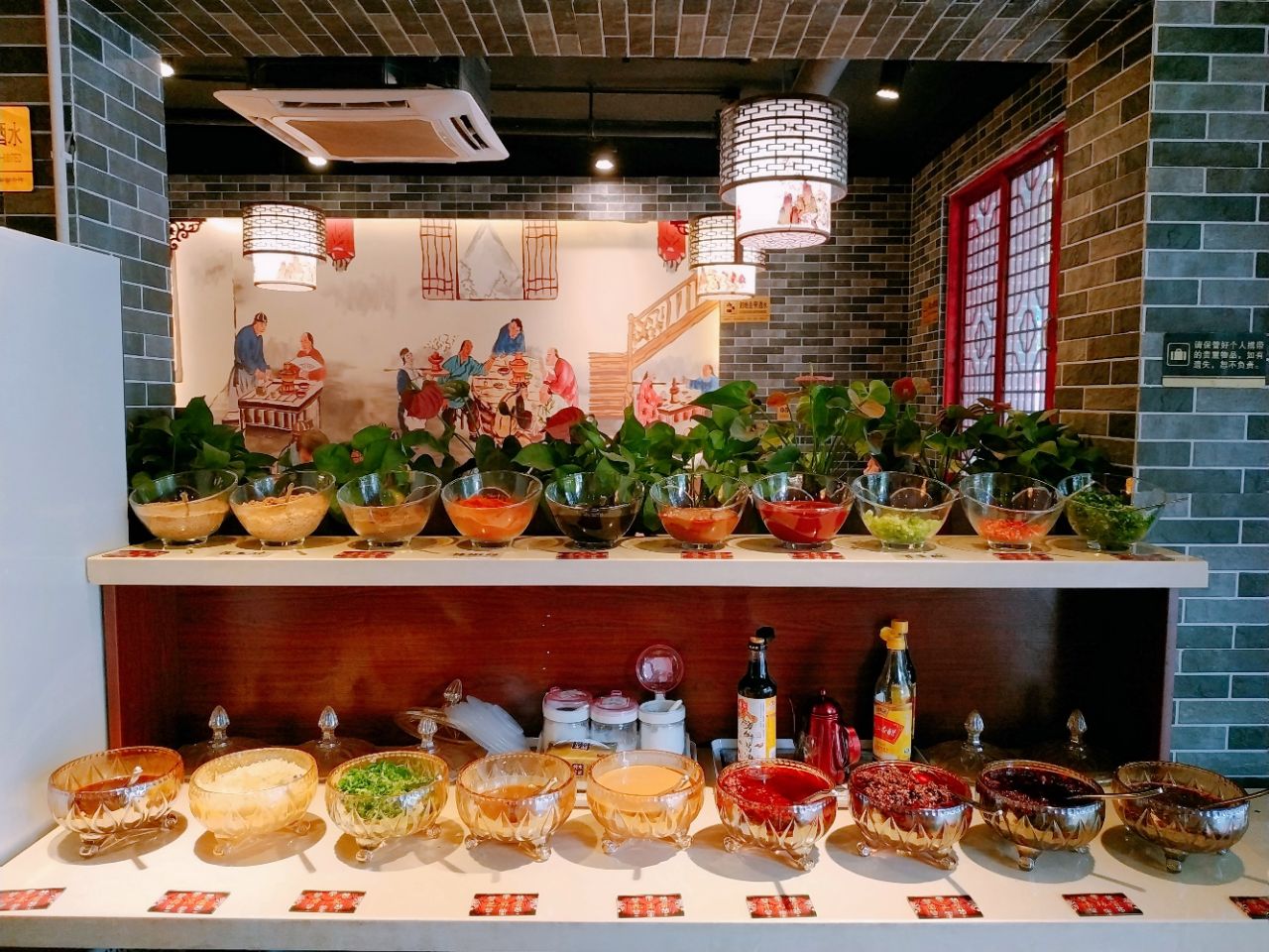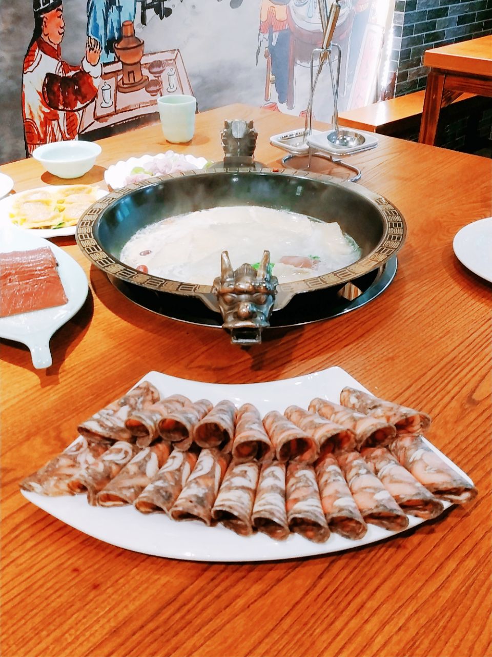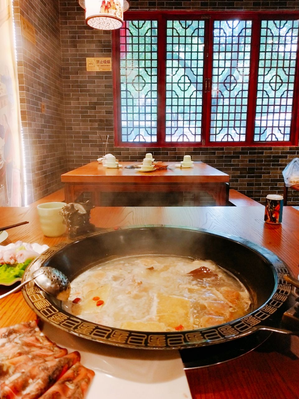 装饰很有成都特色的一家火锅店,价格比较亲民,味道也是不错的。点的是38元的锅底,里面有金针菇、海鲜菇、红枣、大葱等,挺清爽的。自助调理可以选择的余地很大,种类丰富,6元一人。第一次吃到传说中的乌鸡卷,花色挺特别的,口感鲜嫩润滑。还点了手工蛋饺、水饺、牛蛙、鸭血、三林塘肉皮,两个人吃得好撑,才花了157元。服务员有时比较粗犷,互相大声讲话,旁若无人,可以再改进下,其它方面都很满意。在他们家拍照特有灵感,我可是用了绳命创作了,哈哈,祝生意兴隆。