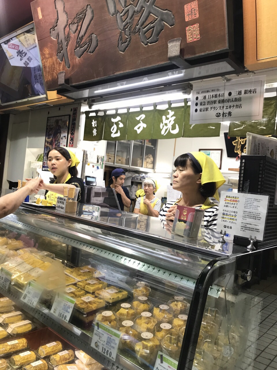 一直很喜欢吃玉子烧,还要是那种刚出炉的,热气腾腾的那种才好。 这附近有很多家玉子烧,有的名气还不赖。 小亚独自过来觅食,想选一家玉子烧来尝尝。 可惜无线Wi-Fi在导哥身上,所以没有网络也无法查看网络评价。 这家和对面那家山長玉子烧成了我的目标。 一家店看起来比较新比较大还显眼,这家看起来旧一点但是比较有年代感。 我走到这家的摊位前,店员很热情的招呼我,还让我品尝试吃品。 尝了一小块,然后看了看展示柜里陈列的玉子烧品种,并没有我想要的蟹肉款,默默的我就走了! 去对面那家网红店买了一份玉子烧!事实证明,我错了。这家店才好吃呀。 悔过!这家服务好,味道好,可惜我错过了它。