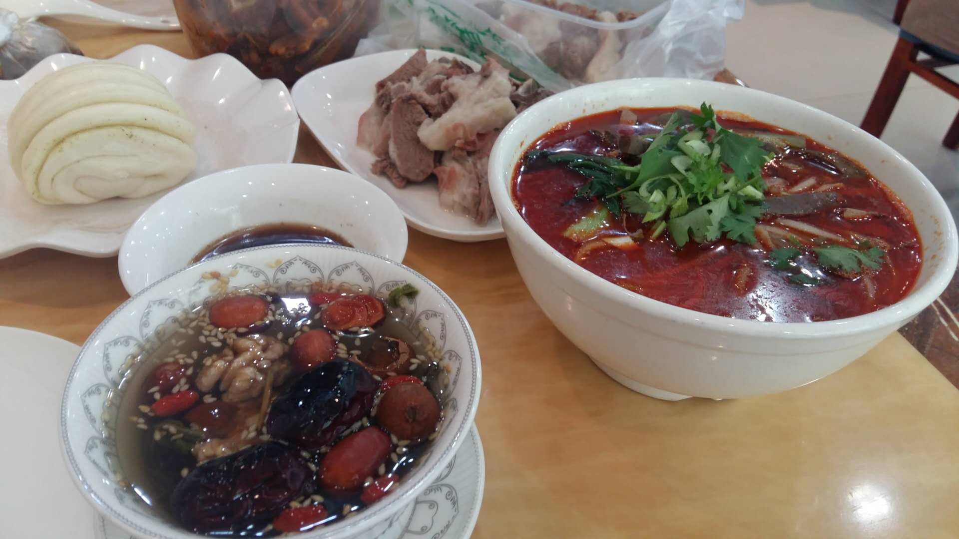 网友2018-06-14手抓羊肉肥而不腻,一个人半斤合适,八宝茶任意续杯,花卷也不错,还有酿皮,烩羊杂,生伞面交通位置方便,距离河边公园不到300米。大厅干净整洁,服务员比较周到。手抓羊肉肥而不腻,一个人半斤合适,八宝茶任意续杯,花卷也不错,还有酿皮,烩羊杂,生伞面。连吃3顿