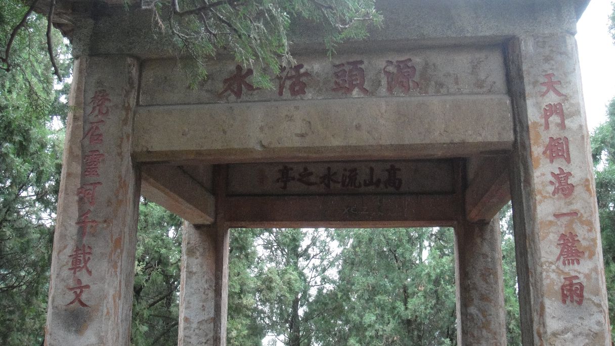 “高山流水亭”上方有巨幅石刻《高山流水亭记》,详细记载了“经石峪”水帘的生动和该亭建立的经过“高山流水亭”上方有巨幅石刻《高山流水亭记》,详细记载了“经石峪”水帘的生动和该亭建立的经过。古人形容之:“瀑流千派,飞喷字画,上构石亭一,宽容数人,危壁在后,雪浪在前,每风鸣雨响,万籁俱怒。