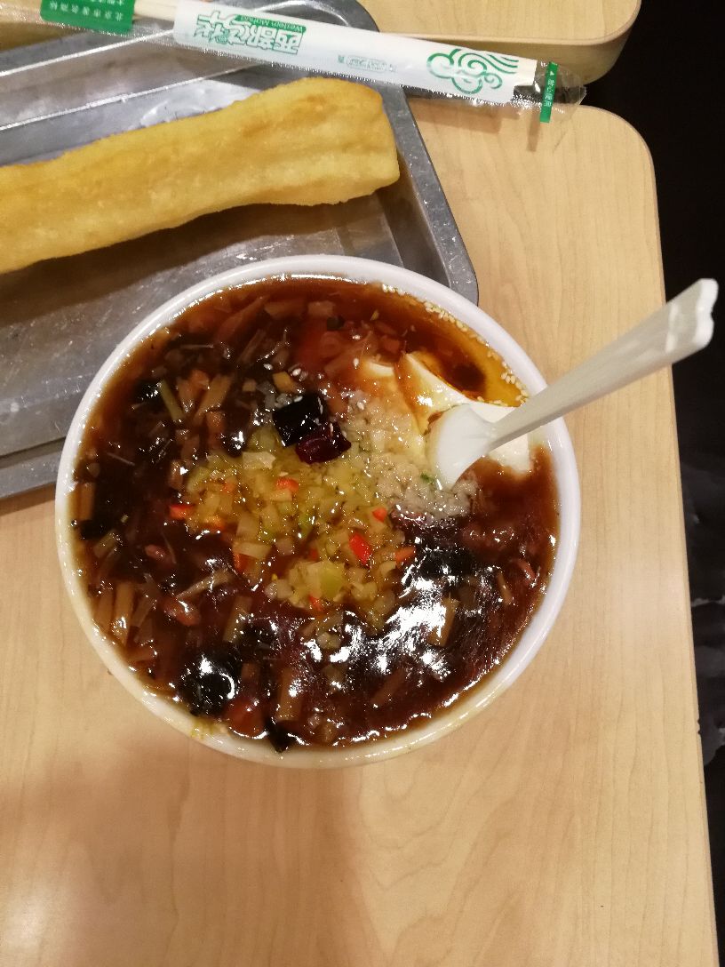 豆腐脑很好吃,早餐面要了毛细,但是做出来的不很细,不同师傅做的不一样。晒一张模糊的照片算是警告