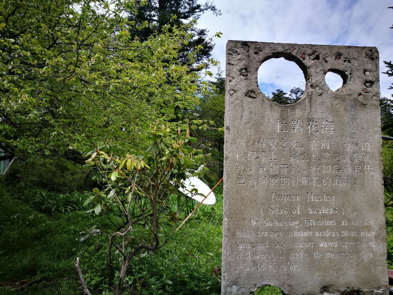周围的山坡有好多高山杜鹃,只是未到花开时节,桫椤树没看到,这一片山路比较缓和,到达这里,峨眉山...位于峨眉山金顶附近的太子坪区域,这个地方有两块石碑,一块写着杜鹃花海,另一块写着桫椤坪,周围的山坡有好多高山杜鹃,只是未到花开时节,桫椤树没看到,这一片山路比较缓和,到达这里,峨眉山金顶就不远啦。