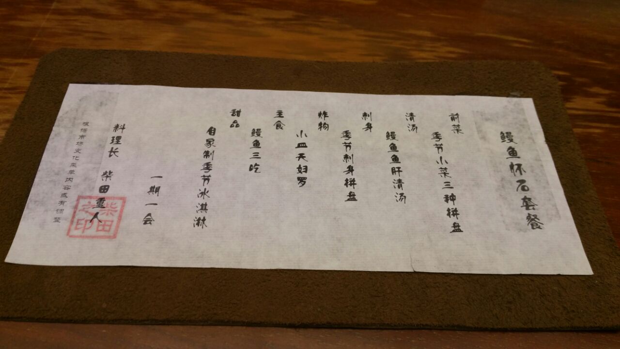 感觉是我吃过的最精致的日料了非常赞 【前菜】抹茶豆腐、扇贝裙边和三文鱼慕斯,扇贝裙边很好吃,配的酱料很提鲜,完全吃不到腥味,推荐~抹茶豆腐和慕斯比较有新意,不过不太吃的惯。 【清汤】里面有一大块鳗鱼肝,汤也很鲜 【刺身】三文鱼、加吉鱼、金枪鱼,食材很新鲜,选的长台,对面就是大厨的加工台,边看边吃也是一种享受哇~ 【炸物】秋葵、茄子和土豆,配了抹茶粉。外酥里嫩,好像吃到了食材的鲜味。真心好吃~推荐~ 【主食】鳗鱼三吃:鳗鱼、鳗鱼饭、茶泡鳗鱼饭。鳗鱼给的真心实惠,而且味道好配了小菜。吃得相当饱。非常棒! 【甜品】店家自制的冰淇淋,选了抹茶味道的,抹茶味道浓郁,非常好吃! 另外店内环境不错,随处都可见到精致的小心机,而且每道菜做得都非常的精致,感觉自己在吃艺术品哇~ 服务也非常棒,服务员周到热情,很赞! 很值得拔草的店