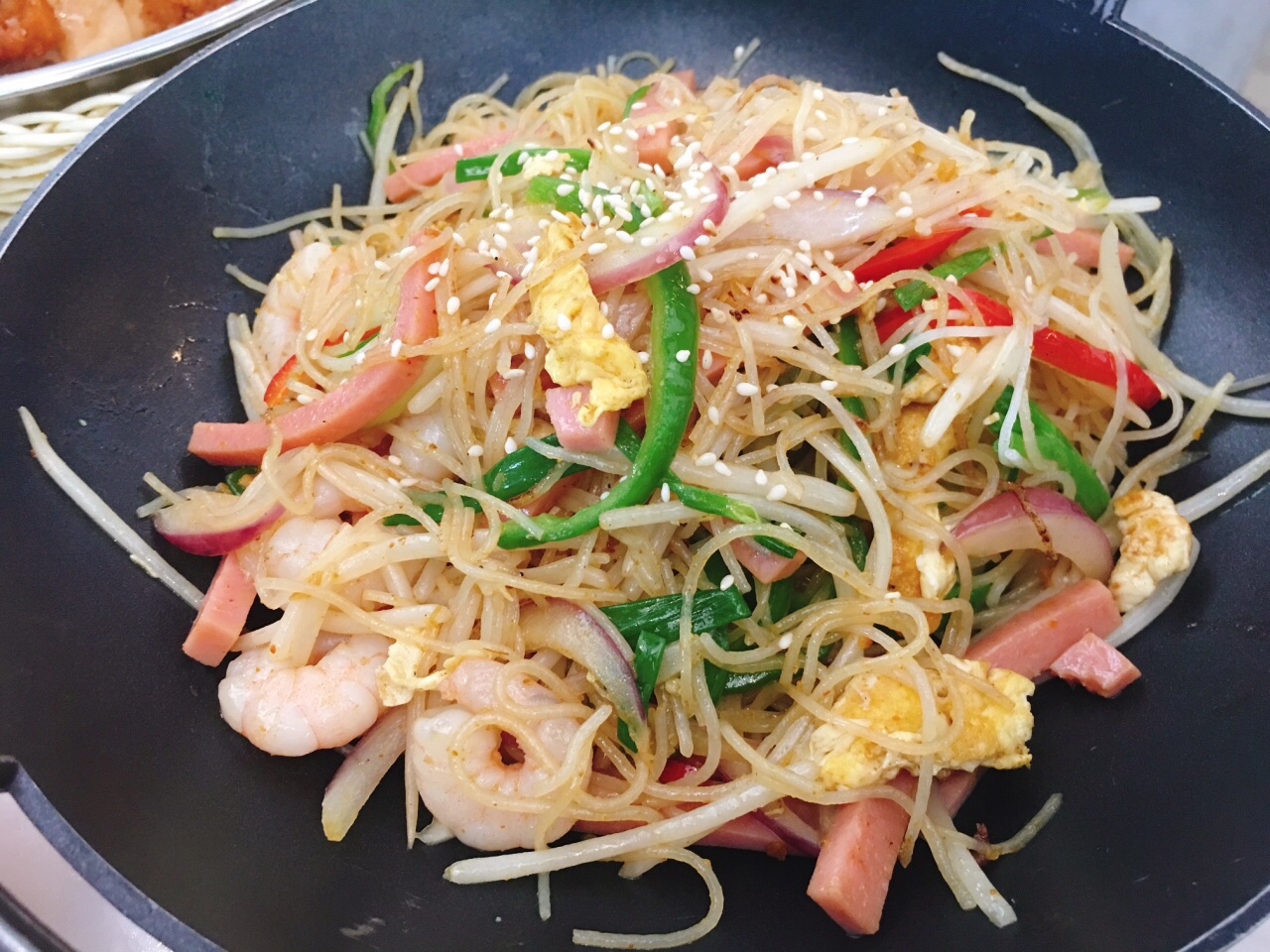 凉凉的很好吃,红豆双皮奶是热的沙茶牛肉炒芥兰做的不错,牛肉很嫩,沙茶酱汁很入味,星洲炒米粉料蛮...