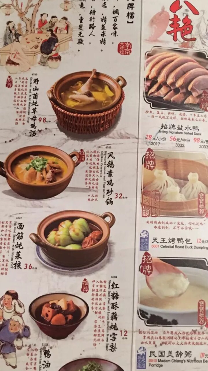我家里很喜欢淮扬菜,对南京菜蛮有感情的,也很喜欢吃江浙沪菜系,带点甜的菜,湖北人可能很多人都不习惯甜甜的菜,但我觉得很好吃~ 南京大牌档吧,其实不全都是南京菜,大概有一半都是川菜呀别的地方的菜,所以也有正常餐馆的点的,不用担心会吃不惯没得吃的。 【地点】M➕商场里,几楼大众上有写,我忘记了嘿嘿~店面蛮大的,很亮眼好找! 【味道】就我个人感受吧,就特色菜,南京菜而言,还行,但不算蛮好,糖芋苗不错,赤豆元宵一般般,没有芳婆的好吃,糖藕我有点失望,藕比较干,切太薄了,都沾一坨,很不好夹起来,其他藕汁啊桂花味还不错~烤鸭包估计外地人会吃不惯,甜度有点甜,不过我觉得是过于油腻了一点。桂花拉糕挺好的!我挺喜欢的!还有美龄粥很喜欢,很好吃,吃的很舒服! 【环境】古色古香的中式风格~我很喜欢这种很浓郁的中国风,门口还有两位大爷领进门服务,会一起喊那种比较复古的口号,有点意思~餐具菜单都挺美的~好像还有个女服务员叫“美玲姐”哈哈哈哈哈