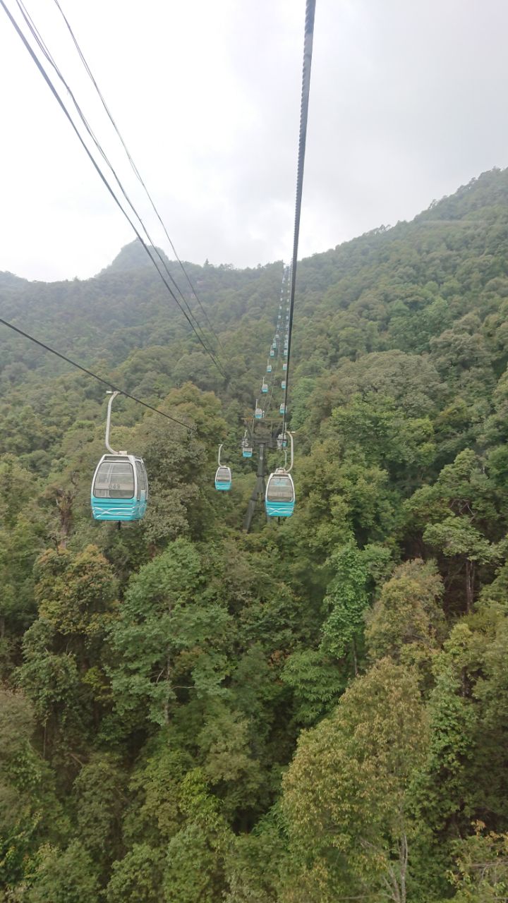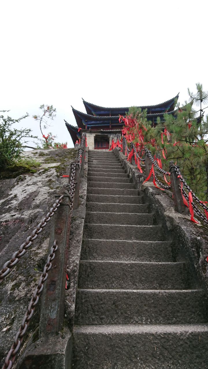 云峰山在腾冲旅游目的地中并不出名,一来这个景点离腾冲市区相对较远,而来登山应该不是来腾冲的主要目的。 有一天自由活动,不想早起去更远的芒市或者瑞丽,参考网友的建议,选择了云峰山。 云峰山距离市区大概一个小时左右的车程,一路都是县道,车速不能太快。 远远就能看见云峰山的山顶,是一中式寺庙或道观建筑,是附近绵延起伏的山脉中最高的一座山峰。 提前预定了来回电瓶车票,索道票和景区门票。友情提醒一下,如果对自己的脚力不够自信,或者非专业登山人士,我建议大家还是坐电瓶车和索道来回。即便坐索道到达终点,离山顶还有很长的一段特别陡的阶梯,很需要费些力气的。 索道很长,基本要坐半个小时。索道下车后是一道观,穿过道观就要开始爬阶梯。请有专业设备的同学把设备都带上,真的很陡很难爬。 我爬了快有一个小时才到山顶。道观建筑层叠,飞檐走壁,红墙黑瓦,云雾缭绕,让人有置身于仙境之感。这时,我才有云峰山此行不俗之感。 听说云峰山道观相当有名,南洋的华侨和当地人都喜欢在大年初一挣烧头香。我也目睹当地老百姓拖家带口来请愿烧香。那个在襁褓里的孩子目测还不足周岁,那个步履蹒跚的老人已经年过古稀。真不知道如此陡峭高耸的山峰,他们是如何爬上来的。 对了,上山阶梯是单行上行。下山可以根据标牌指示,从后山绕行。绕行很远,虽然一路上上下下,但还比较好走。 最后,让我推荐一下山下索道边的素食餐厅。用卷后38一位自助,超级超级值!