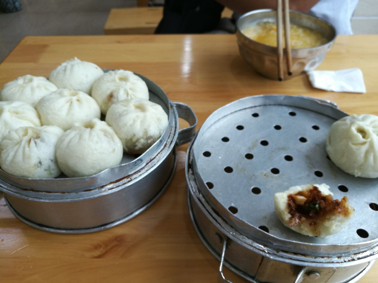 一笼八个7元,味道非常好,小弟一个人就吃了一笼,平时其他家的包子他最多吃半笼,于是又加了一笼