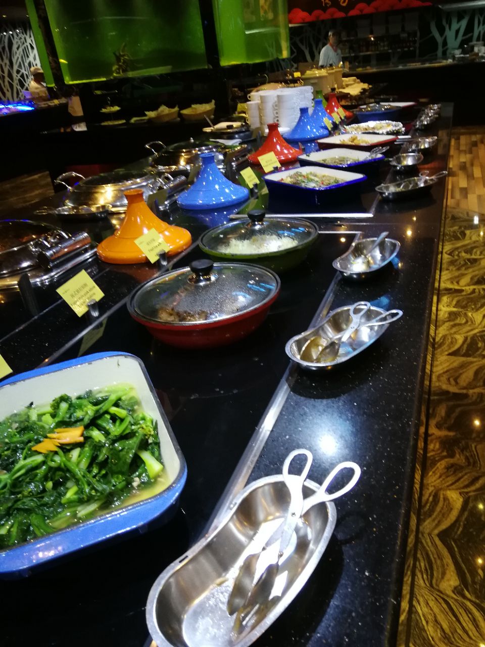 泰古酒店五楼,飞机误点,达到酒店已经七点半啦,直接下五楼吃饭。网上口碑不错哟,试着去吃吃,七点多能吃的已经不是太多了,用餐人也少了,三文鱼任吃,牛排也是现烤,冰激凌挺浓郁的,还有面包蛋糕等一些精致西点,价位也行159一位。这次品尝唯一的遗憾是感觉麻辣小龙虾炖得实在太老,尾巴里的肉没有弹性,缩水散开了。