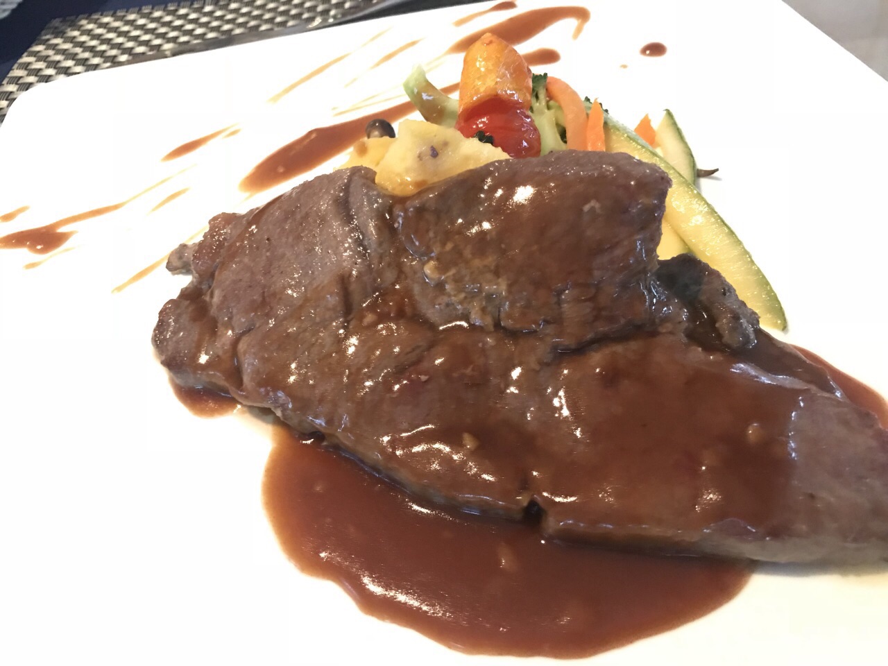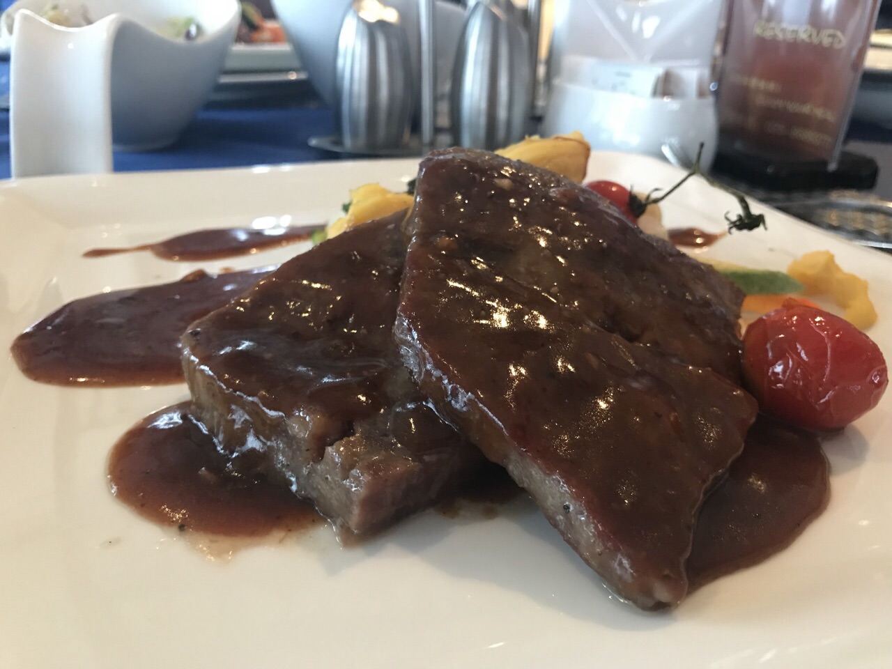... 内容来说很丰富,除了牛排、甜品之外, 其他菜点品质、摆盘还都不错 牛排腌制的有点过了,咸咸的