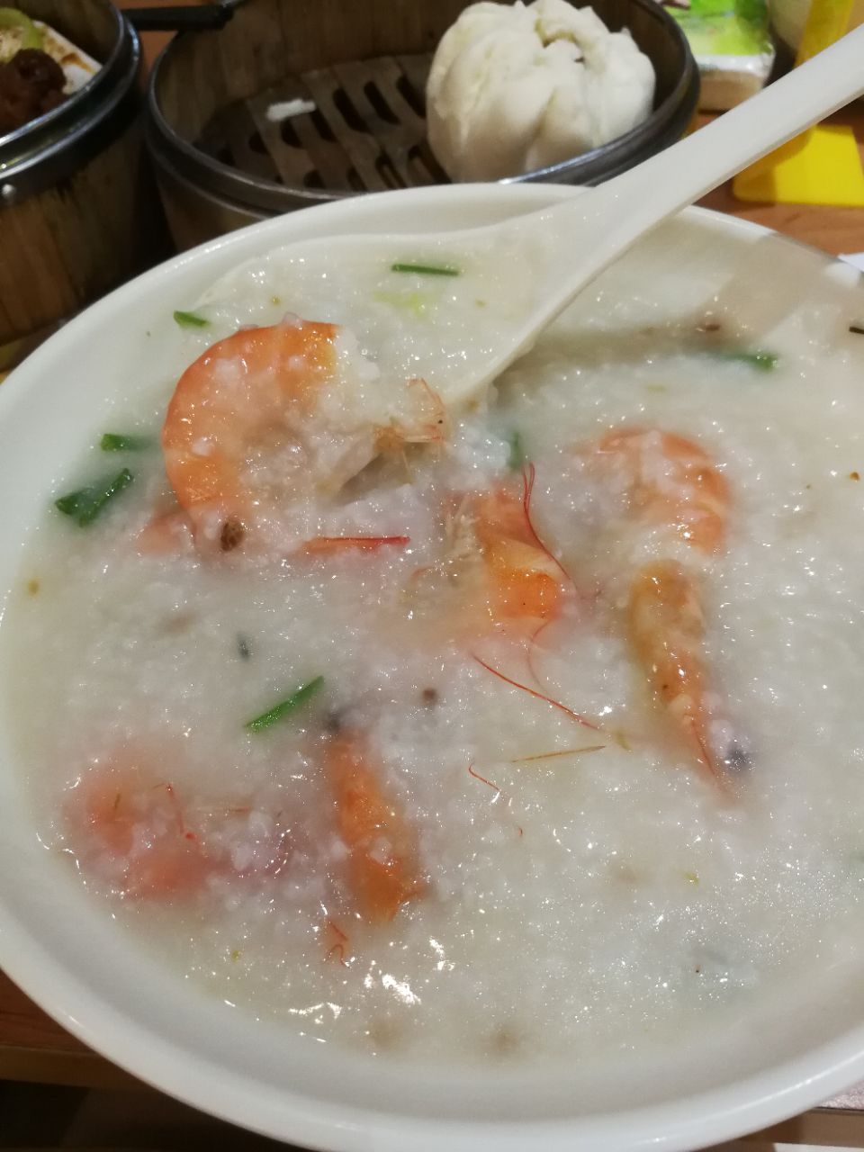 地方很好找,离海边近,团结路近榆海线路,去吃的早餐,有各种粥和粉等,油条叉烧包蒸凤爪等,点了一碗小份基围虾粥,15元,份量挺大,俩女生一起吃,味道超鲜美,配上叉烧包和凤爪,早餐营养美味饱饱哒,走热了也可来份清补凉,绝对美!