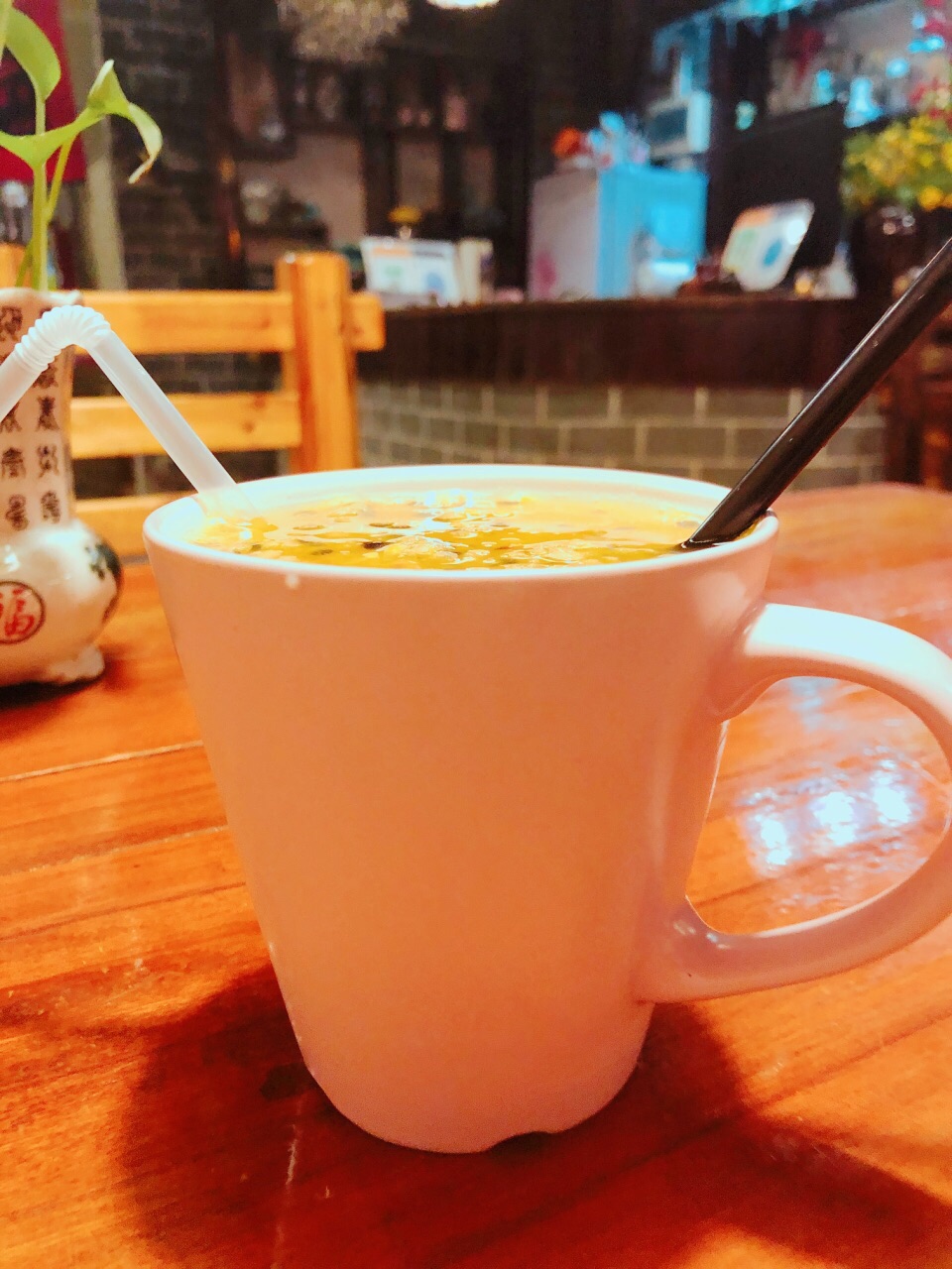 老板娘人很好。我们在古镇闲逛了好几圈,被老板娘说的一句:我老公做饭很好吃哦。吸引去了,那大概是幸福的味道。因为男朋友不爱吃鱼所以点了啤酒鸭和番茄炒鸡蛋。又加了一杯鲜榨百香果汁。味道对我来说倒还好没有惊艳,就普通人家饭菜的感觉。挺好的。两个菜一杯鲜榨汁一共91