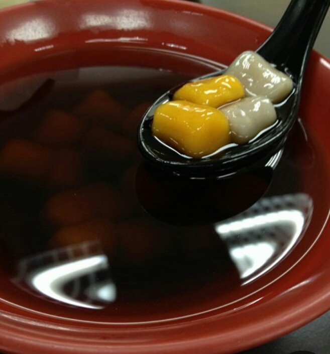 甜点黑糖自家制芋圆,黑糖味不浓,有芋圆及番薯圆两式,番薯圆比芋圆好吃但少很多,还是九份的好吃哈