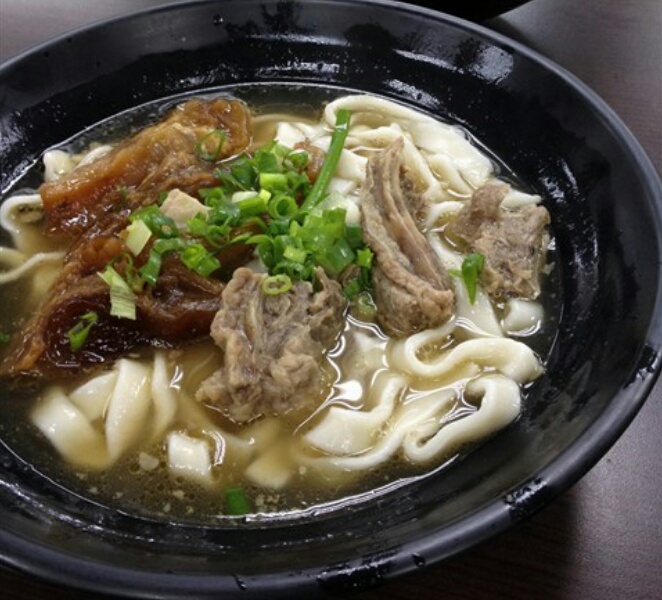五点多些到,未到晚餐时间人不多,殷勤的店员递上点菜牌,划完还可以抹去笔迹重用。我们选了清炖半筋半肉面、红烧半筋半肉面、笋丝卤、虎咬猪和黑糖芋圆。红烧牛肉面带辣味浓,另一清炖半筋半肉面的牛肉汤,满满的牛肉鲜味,不会给红烧板的辣味抢去,所以我们都比较欣赏清炖的。牛筋软硬度恰到好处,韧韧的满载骨胶原, 嘴嚼间透出一阵阵好味道,值得一赞;牛肉则鲜甜肉味香浓,与QQ的粗面条是绝配,令我明知汤头油爆还是大喝特喝只剩下一点点。另外笋丝卤没有太多调味,也不是很臭的笋虾类,味道是可以的。虎咬猪就是割包,好像在夜市吃过,取外层 馒头开口像虎口夹着猪腩肉因而得名,五花肉先经油炸逼出部份油脂,再用卤汁煮至入味,加花生粉与酸菜包进馒头,也是不错。甜点黑糖自家制芋圆,黑糖味不浓,有芋圆及番薯圆两式,番薯圆比芋圆好吃但少很多,还是九份的好吃哈!