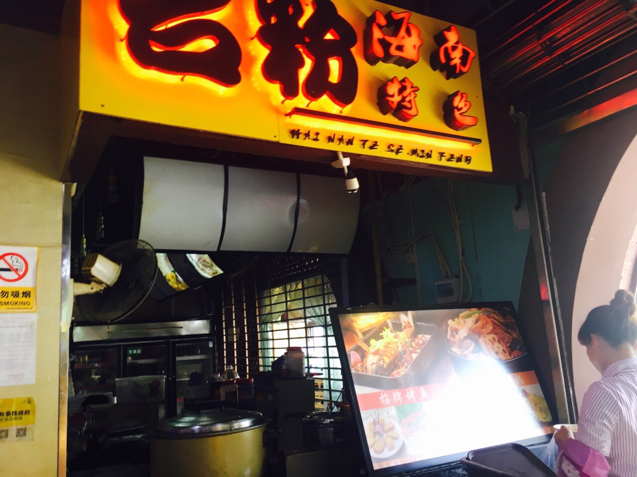 有个大超市,有个水果店,有个美食广场一样的很多小吃铺子,然后有个饭店,但环境都一般