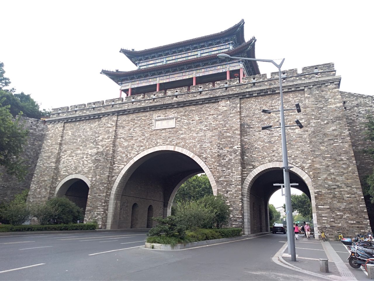 南京仪凤门也叫兴中门距南京西站约500米,也是阅江楼景点的南门出口处,整个城门经修善后在外观上还可以南京仪凤门也叫兴中门距南京西站约500米,也是阅江楼景点的南门出口处,整个城门经修善后在外观上还可以,在城门上也是可以走路的。