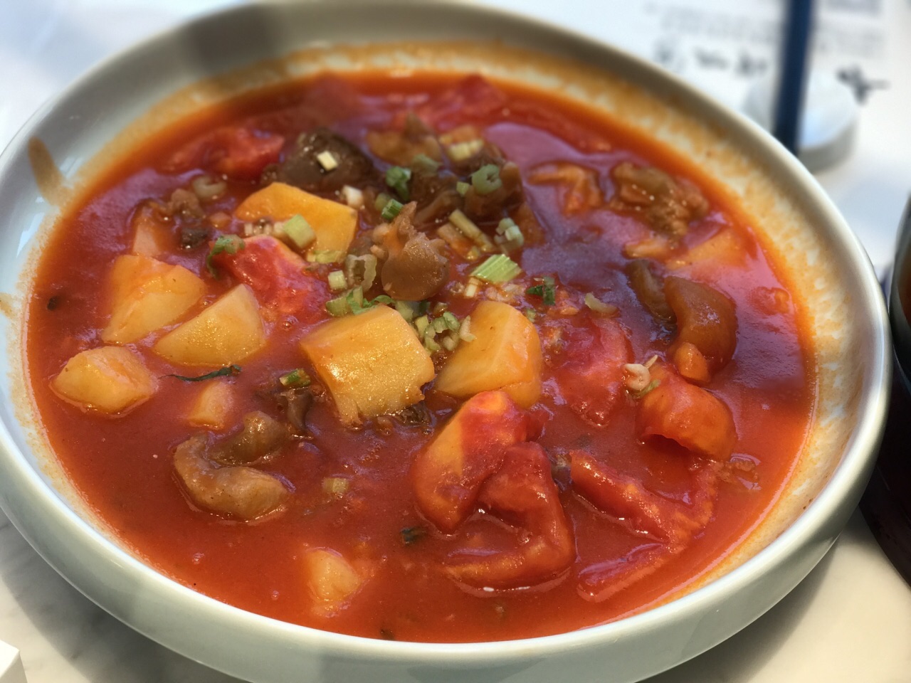 对于柴门的中餐我一直是比较喜欢的。 这么多年对它家的【石锅萝卜】一直情有独钟,每次都必点的菜肴之一, 实话说来,我也是因为想吃石锅萝卜了,才会偶尔去吃吃他们家的中餐。 这家的河鲜做得也不错,只是如果人少,点的鱼比较大只,就不太方便点其他菜了。 这次约了好友聚一聚聊一聊,就选了这儿。 整个仁恒的人气就比较低迷,所以餐厅的生意也很普通,店员倒是配置很齐全,上菜也多快的,服务也积极,很重视桌面的清洁,是时不时的帮你换渣盘之类的。 点了四个菜。 两道菜比较失望,一道菜还不错,萝卜还是老水准,好吃! 【豆瓣鱼】本来是想点江团的,但是店员说要接近2斤一只,两个人太大了,推荐我点这个鱼。但是这个好像是草鱼哇,反正刺特别多,跟吃鲫鱼似的,很麻烦很麻烦,不喜欢。况且鱼肉太过于绵软,根本不是嫩好吧!豆瓣酱汁调得跟鱼香汁差不多。 【番茄土豆烧牛筋】好像是这个名字。番茄不软,汤汁不够稠,土豆还凑合,牛筋硬得根本嚼不动,简直了!失望! 【粉蒸牛肉】牛肉比较老,好在是我喜欢的麻辣口味粉蒸肉,所以味道还不错,只是口感差了些。 【石锅萝卜】稍微油腻了点,口感和味道还是老样子,基本上这一锅我吃干净了。爽! 恩,不太满意的一餐。