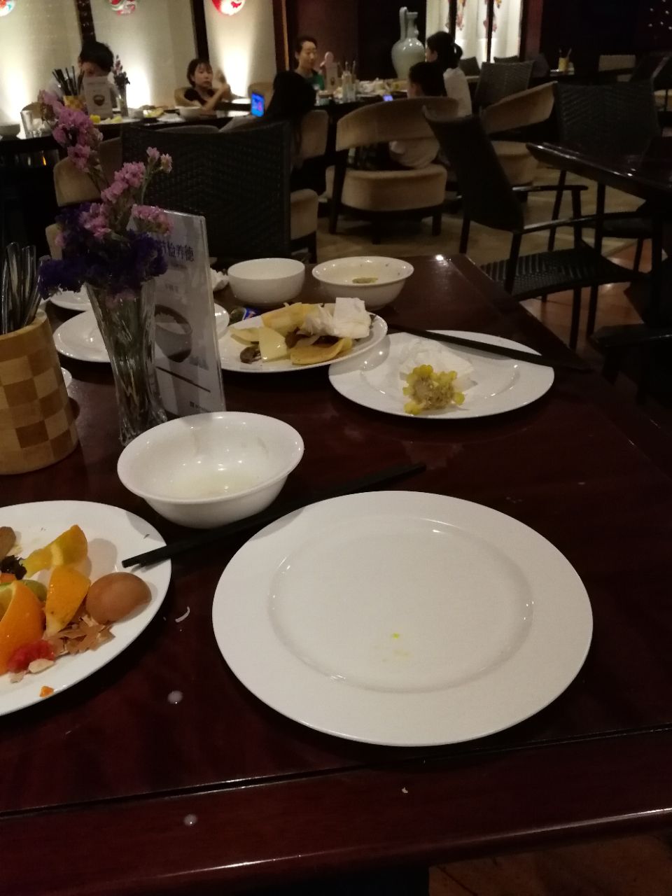 西安新兴温德姆酒店西餐厅住店用的早餐,中西式结合,厨房根据前台做的客流量报表定量,不浪费也不会少。品种不多不少,够吃了,吃完再打些薯条等等小食坐着聊聊也是不错的。各种饮料摆放得不集中,东边桌上一桶西边桌上一桶,不仔细看是找不着的。水果新鲜度需要注意。有现磨咖啡