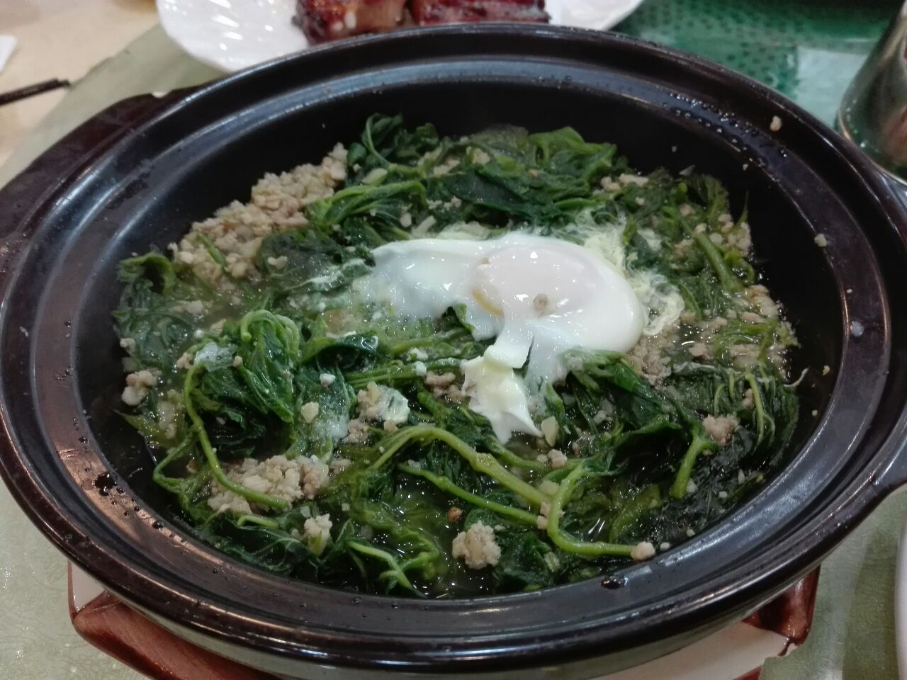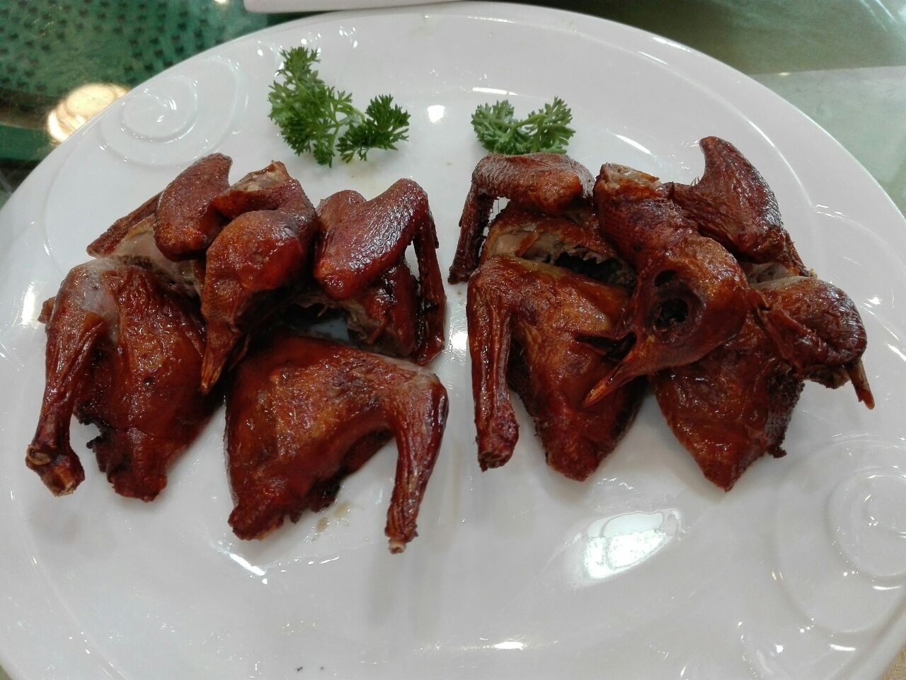周六和一众亲戚来这里开饭,店面装修不错,灯火辉煌,主打传统粤菜,价格中规中矩,有些特价菜还是蛮划算的,但一桌限点两个,“中山南乳琵琶乳鸽”16.8元一只,我们两桌人只能点四只,乳鸽感觉做的一般,不够光亮不够油,吃起来有点木;此外还点了几个菜,“霸王葱油淋海鲩”46元,新鲜肉嫩,值得推荐;“窝蛋肉碎浸桑叶”30元,美味可口,最受欢迎;“蒜蓉粉丝蒸娃娃菜”26元,摆盘美观,也是不错;“招牌烧鲜肋排”78元,烧得太焦,影响口感;其它几个菜做得不过不失。总体感觉这里还可以吧,如果能推出一些团购套餐就更好了。