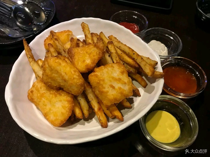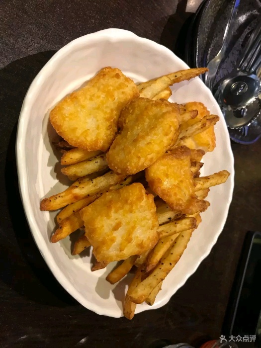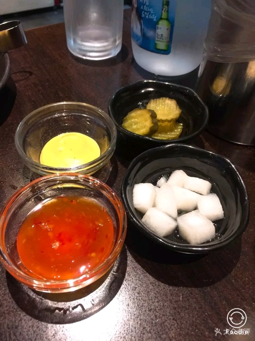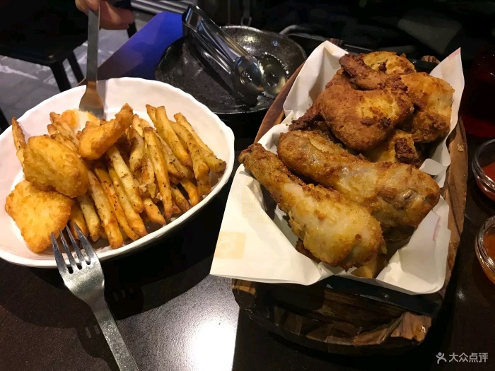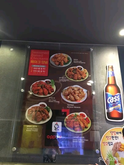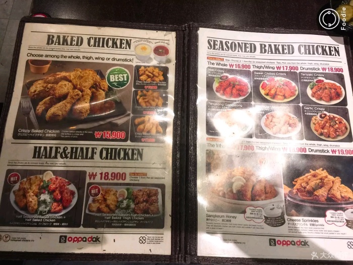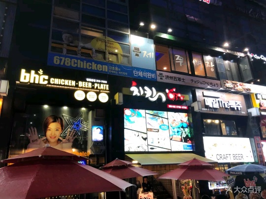 『位置』鼎泰丰正对面,这一条街都是各种炸鸡耶 『环境』有两层,不算很挤。老板娘是个笑眯眯的大婶,不会中文,但是英文还是比较通的。菜单中英日韩文对照,还有图。 『菜品』小菜好吃!而且可以加。如果要喝水要让大婶去拿来,一坐下是没有提供的。点的招牌炸鸡,额比全家桶分量要大哦,不过比全家桶好吃哆啦!一份两人都吃不完,我们还点了薯条,结果剩下两块鸡肉。隔壁日本情侣点了两份鸡竟然吃完了,非常人也。 炸鸡有好多种口味选择,有脆皮炸鸡/辣味炸鸡/酱油炸鸡/葱拌炸鸡等等,也可以选择双拼。虽然这家比全智贤代言那家差,不过韩国炸鸡确实跟国内有差,真的还蛮好吃的哈哈…应该有加了什么特质调料之类的,外皮超级酥脆,鸡肉也算新鲜。