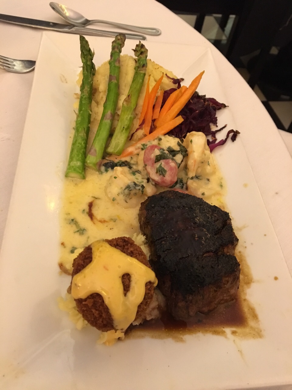 ...糊,味道都一般般,很普通的餐馆,晚上人也不多,不太推荐来这里吃,价格也不便宜,感觉鱼不是很新鲜做到鱼太咸了,牛排还可以,就是烤的有点糊,味道都一般般,很普通的餐馆,晚上人也不多,不太推荐来这里吃,价格也不便宜,感觉鱼不是很新鲜