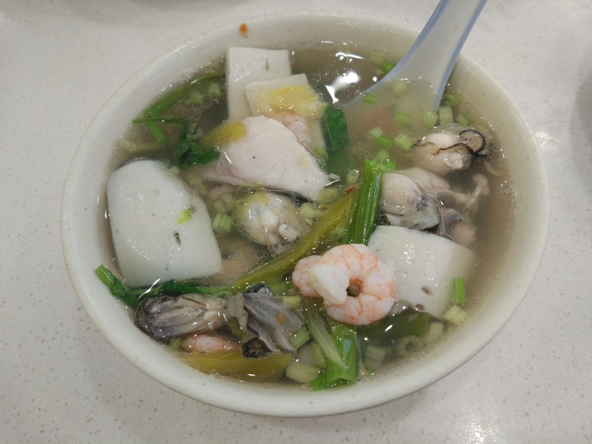 味道尝尝还好,肠粉老是吃不来喜欢的感觉,应该还好吧。海鲜杂汤主要就是海蛎、去壳的虾、鱼片等主打海鲜、牛肉的快食小吃店,有海鲜杂汤、海鲜炒饭、肠粉等等主要菜式,15到30普遍的价位。味道尝尝还好,肠粉老是吃不来喜欢的感觉,应该还好吧。海鲜杂汤主要就是海蛎、去壳的虾、鱼片等。