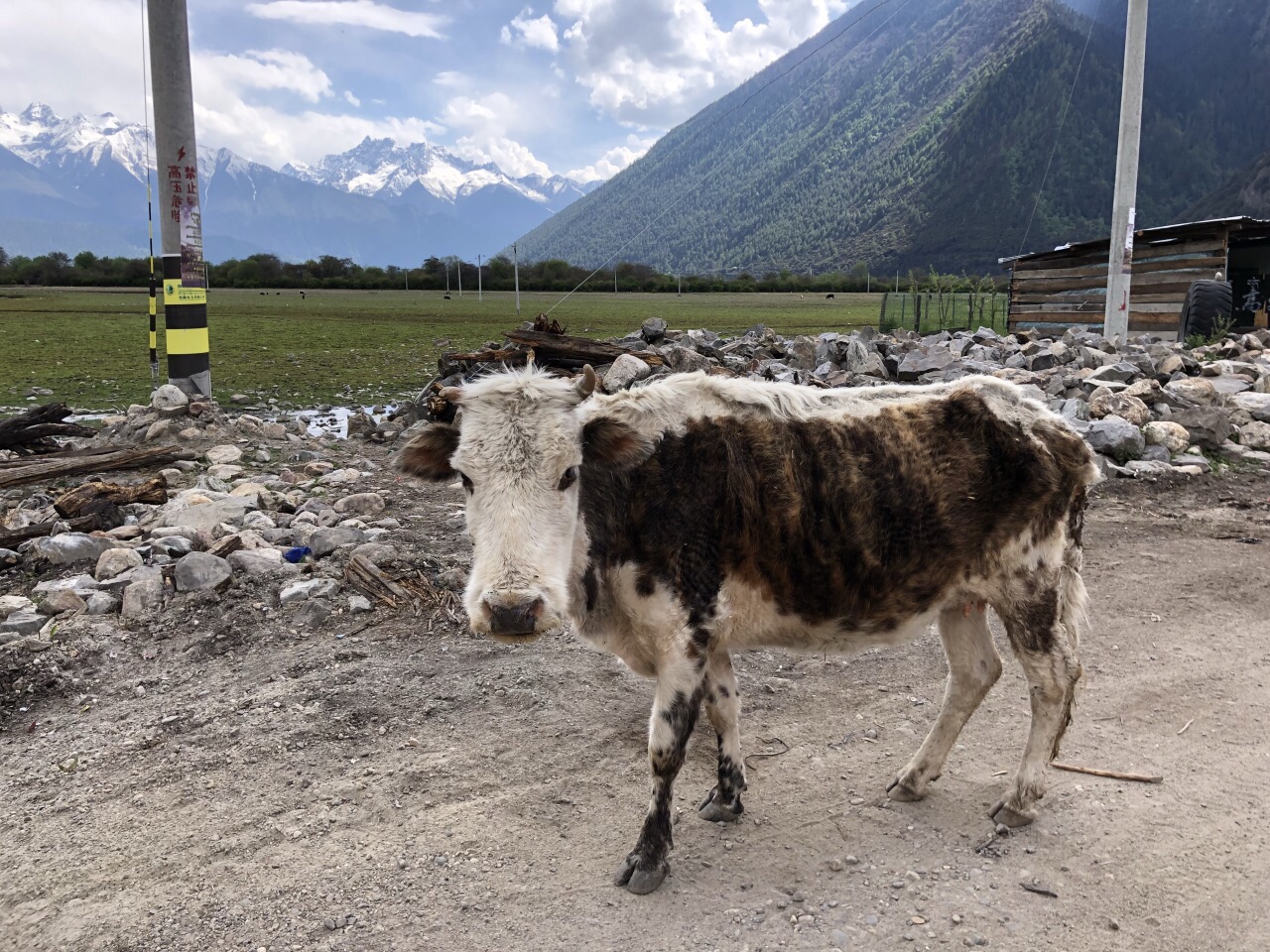 沿着巴松措湖开车到了这个地方,说是中国十大最美古村落之一沿着巴松措湖开车到了这个地方,说是中国十大最美古村落之一。 很安静,我们在那里拍照差不多半小时,一个人都没有看到,只有袅袅炊烟和懒懒的牦牛。 有一条小河蜿蜒而去,衬着远处的雪山,有一群牛在漫步,很祥和。
