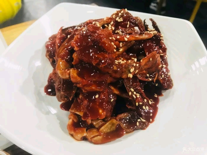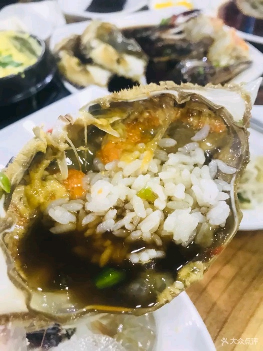[环境] 位置就在东大门饭店聚集的那条街 店真的很密集 要仔细看店牌 吃完在门口遇到一家香港人放着店牌找不到店在彷徨 帮他们找了一下 真的很费劲 名字看第一张照片 这个门洞里还有姜虎东烤肉和另外一个什么忘了 这家客流量还不错 [菜品] 「酱蟹自助餐」我们饭量小 点了基本的17900韩元自助餐 讲真 酱蟹好吃到哭 配套的煎刀鱼也是一绝 要不是因为肚子要留着吃酱蟹 就续自取的menu也很多 辣炖鸡汤啦蒸海鲜都超棒 还有爽口的米酒 但是我们的目标之有一个 就是吃酱蟹 我偏爱辣味酱蟹 第二次续点 居然一次上两只 量不少 酱油蟹很清淡 蟹子满满的肉 还配两只胖胖的酱大虾 盛点酱油放上黄萝卜蟹籽还有香油拌好再拿紫菜一包 味道简直不要太好 不过最美味的还是拿蟹盖里的肉肉拌饭吃 说说就流口水了 性价比太高太高