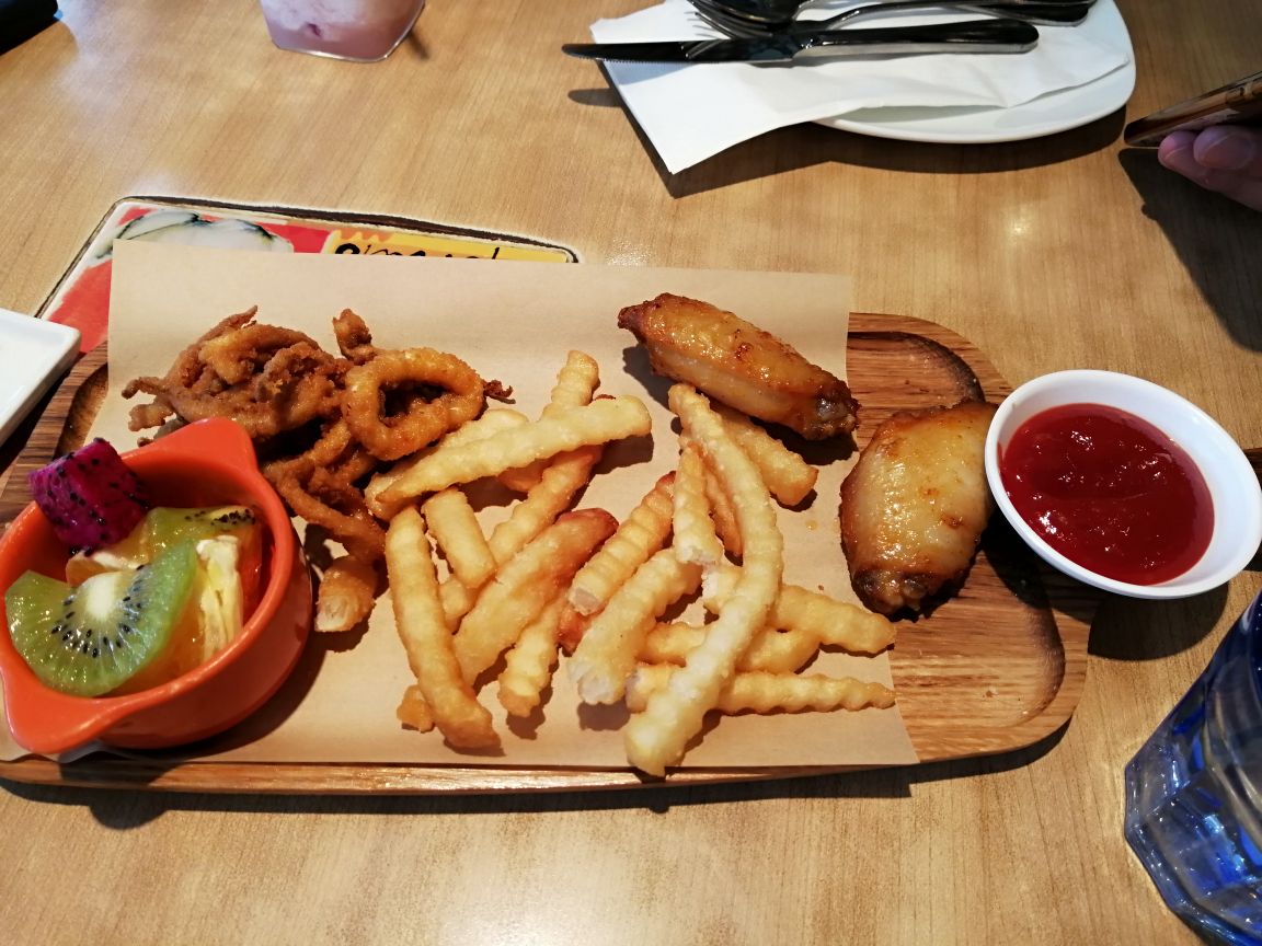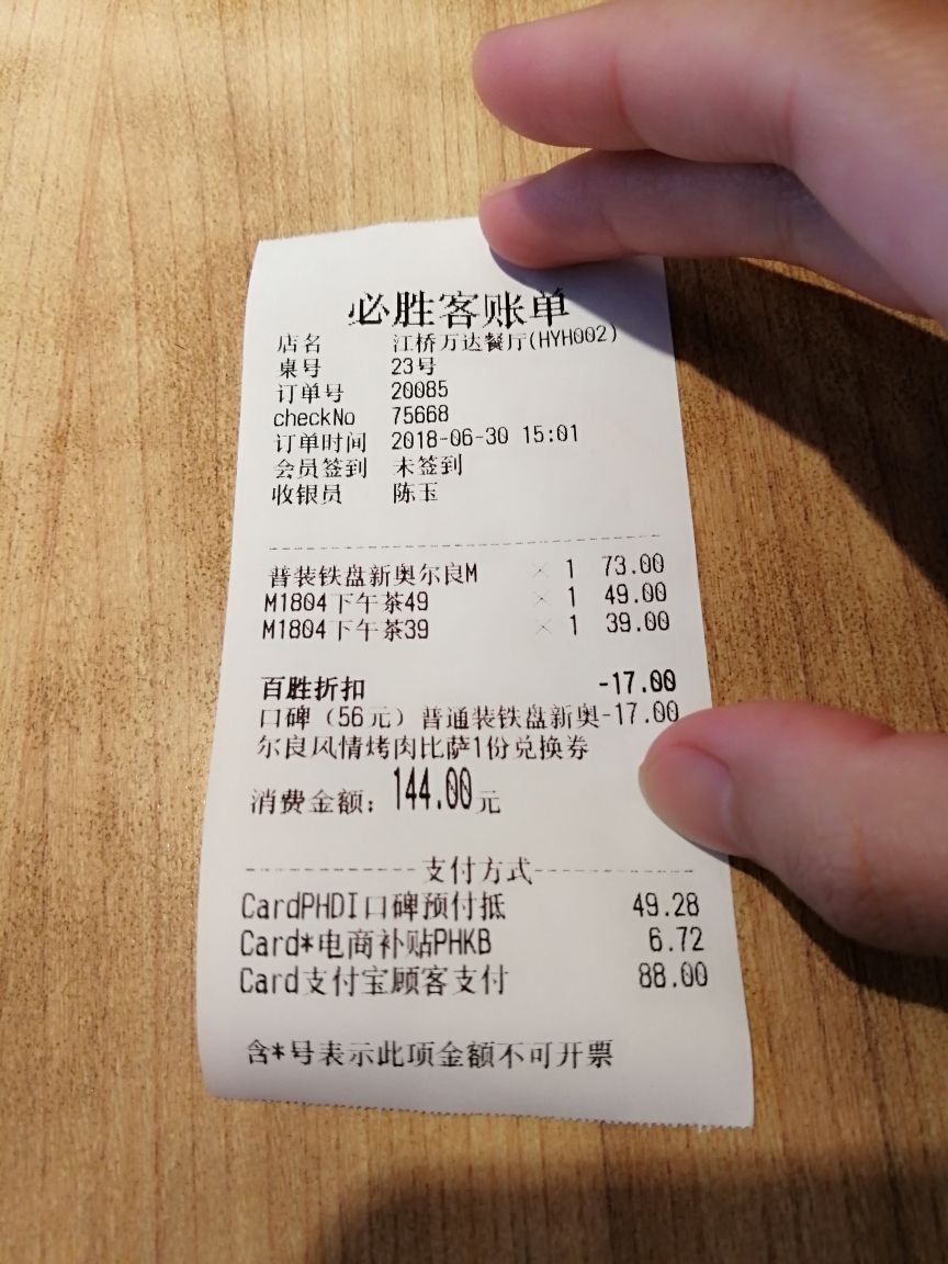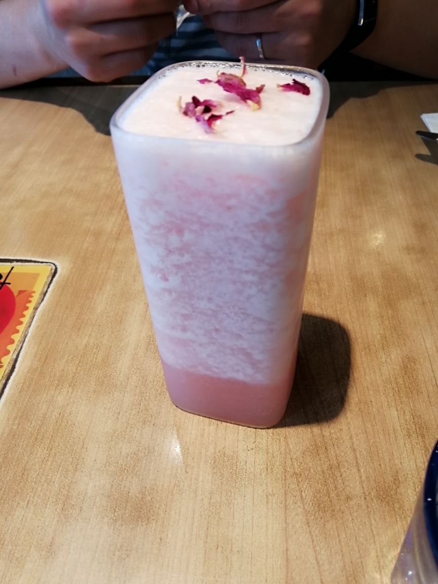 因为儿子在江桥万达上钢琴课,所以经常下课后就在万达吃饭。对于孩子,必胜客自然是永远的最爱。正好到了下午2点,所以可以点下午茶了。一份39元点的是抹茶雪域蛋糕和金桔茶。另一份49元是小食拼盘加玫瑰雪饮。第一次喝这个玫瑰的饮料,个人觉得很好喝,续了两杯披萨是在口碑上买的,便宜了几块钱。总体来说这家的服务和口味都还不错。