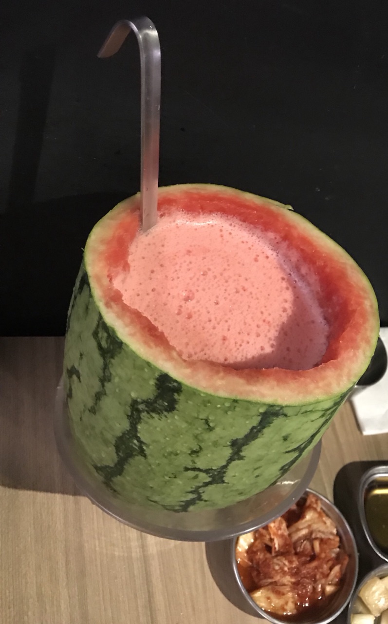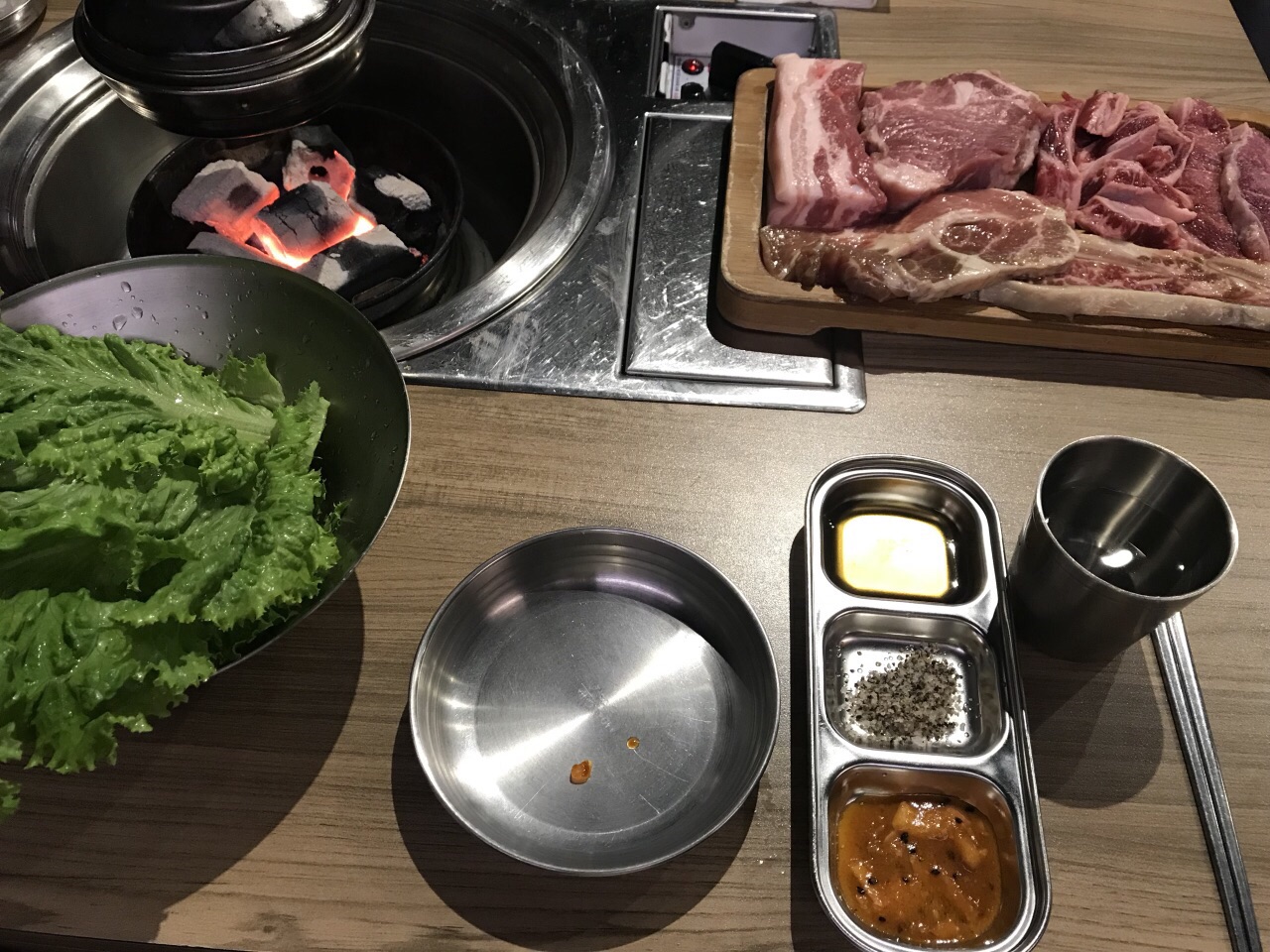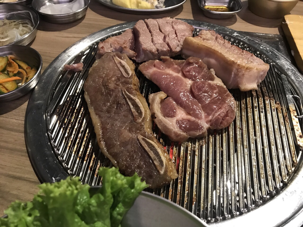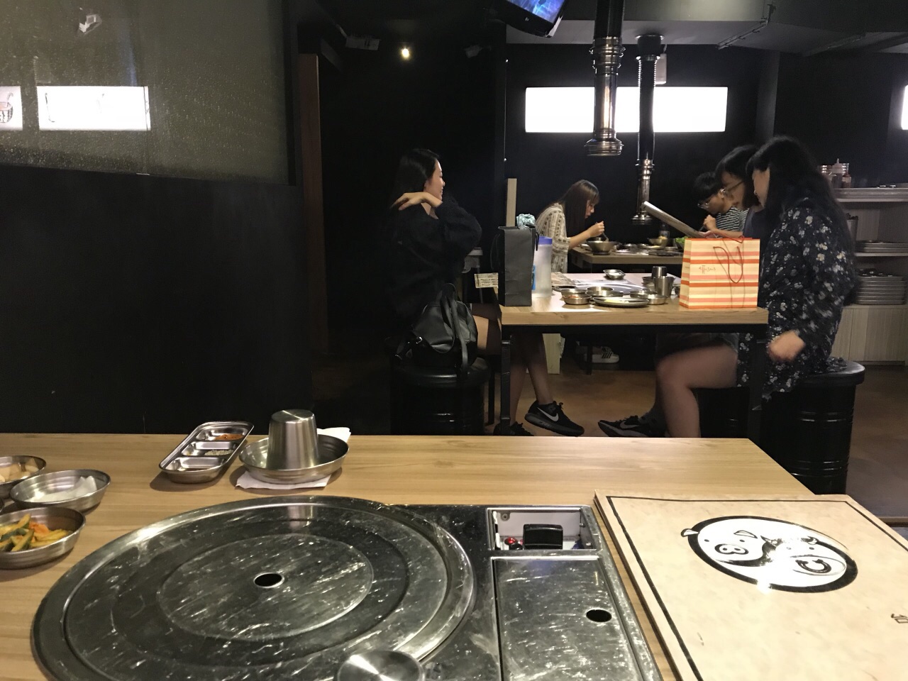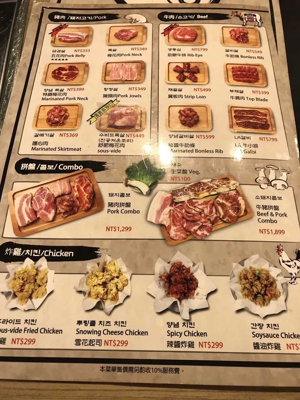 四個人均分,一人吃了800元台幣,水果燒酒很特別也好喝,建議一定要點,而水果燒酒中的哈密瓜燒酒若要點必須提前二或三天前預訂,否則店內無現貨。店內服務員會協助烤肉,技術專業,所以肉吃起來火候剛好,肉質鮮嫩,而五花肉該焦脆的地方也焦脆。環境走工業風,很有風格,值得一試。