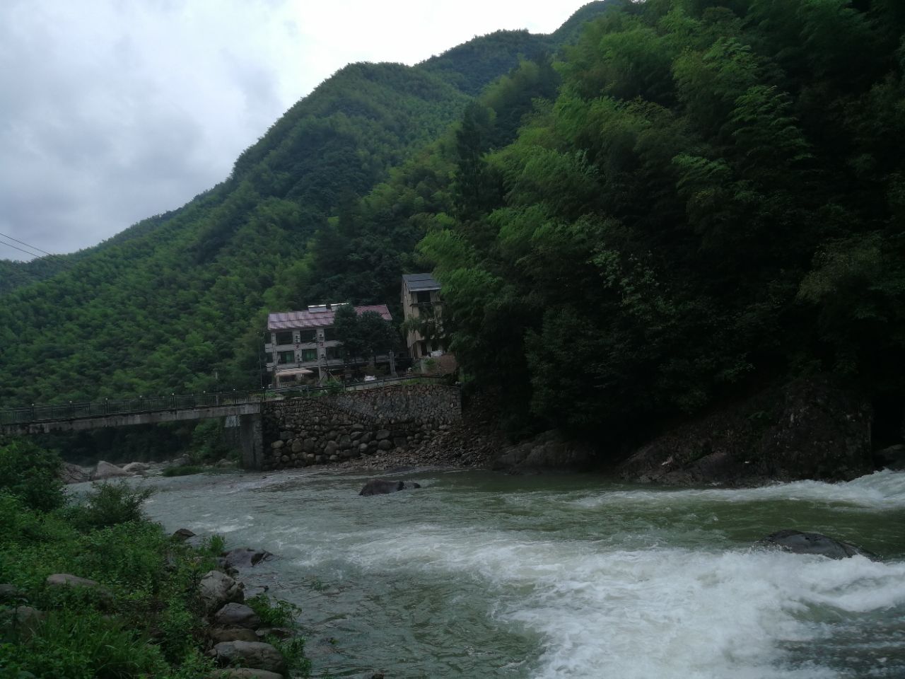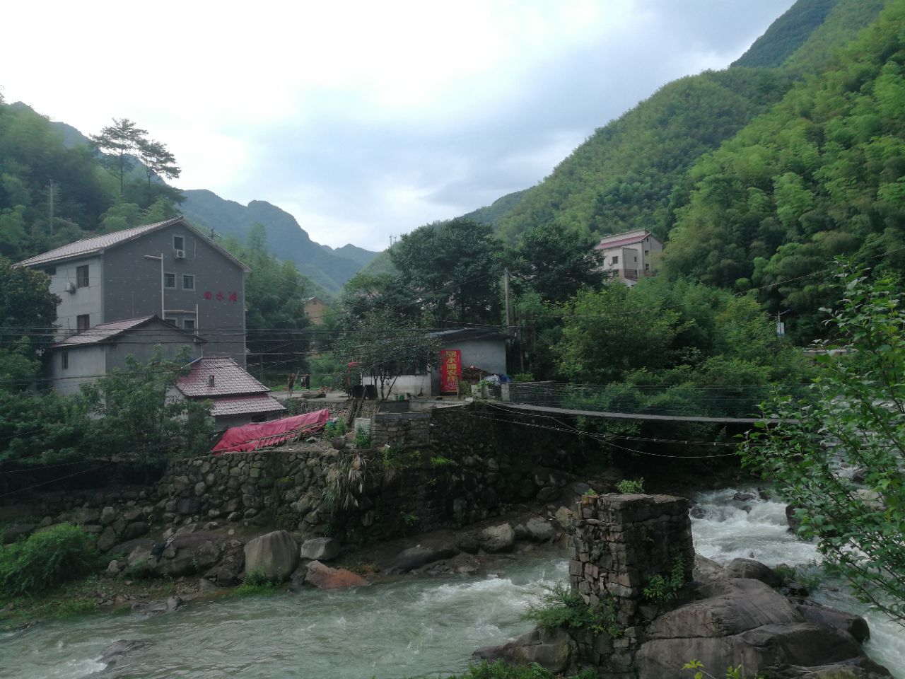本来跟家人亲戚约定星期六早上出发,因为带着孩子不想太累,所以我们一家临时决定星期五下午先行出发。 出发的路上一直在找住哪家农家乐,看到乡邻乡亲评价很好,打电话联系了老板,老板很实在,告诉了我们一些基本情况。 晚上安吉下暴雨,我们8点多开始一路摸黑开上了山,导航到了目的地却没找到(老板推荐用高德地图,我们用的百度定位错误),联系老板,老板本以为我们不来了,晚上9点特地爬起来撑着伞在下坡路口等我们。 第二天早上的早餐也很丰盛,还跟老板聊了天,老板的爸爸妈妈也非常和蔼可亲,让我跟丈夫感受到农家情,商业化的时代,山上的农家乐也越来越商业化,趋向于酒店式,设施各方面是跟上了,却少了农家人的那种特有的情怀。 乡邻乡亲的右边是竹林,左边下坡后是小溪,那里有专门圈出来可以游泳的地方,无奈我们去的时候暴雨,无法下水,门口有个小秋千坐在上面可以凝望右上方的高山,雨后仙气缭绕,让人羡慕在这大山长大的孩子。 丈夫跟我说:要谢谢老板半夜收留我们,很感激。 农家乐不同于商家酒店,是客家,希望后面到来的朋友们,可以放下对服务的要求,以平等心尊重对方,去住去感受农家朴实的情况。