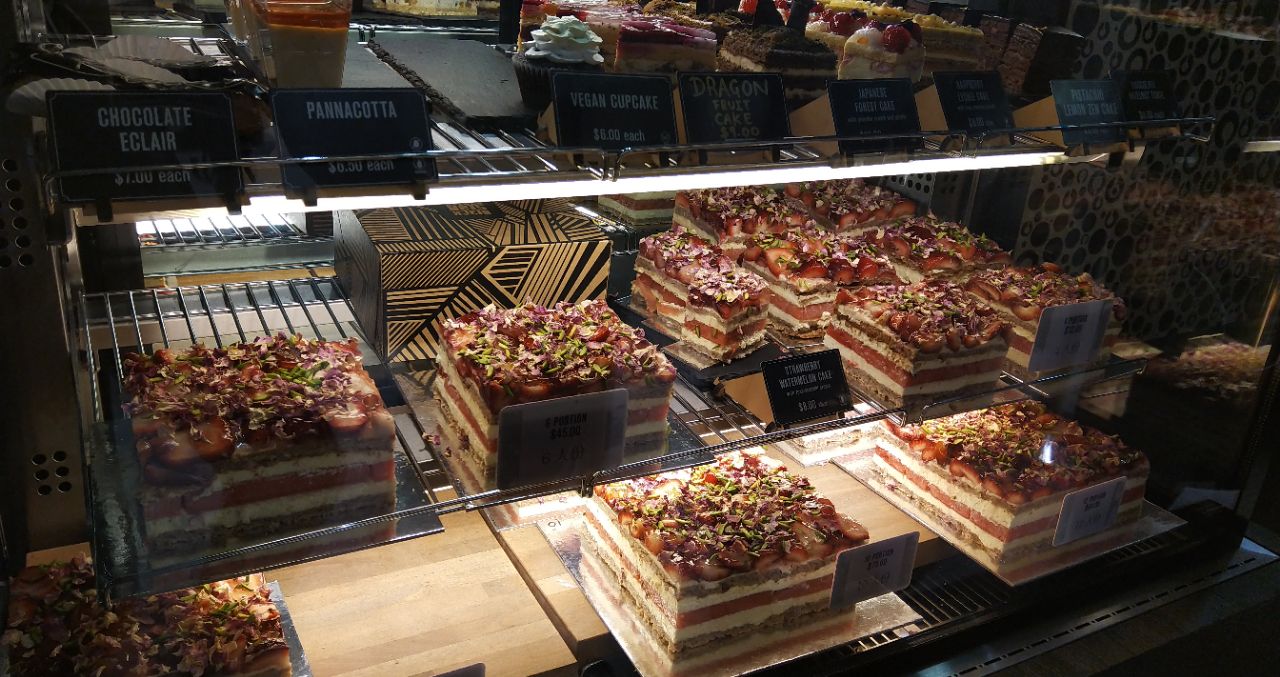 来悉尼的理由,没有别的,就是这个西瓜蛋糕! 藏在CBD的商场里,三楼的纪伊国书屋角落,日本文化在悉尼真是无处不在。排队的人挺多的,也没看出店面有什么特别的,反正排队的亚洲人居多,进度挺快的。 最受欢迎的肯定是西瓜蛋糕,有大小不同的尺寸。我买了最小的,一个人吃正好。8澳元,反正按汇率算比国内做得更差的模仿款要便宜不少!包装盒非常漂亮,店里堂食区人太多只能带走,有点不开心的是勺子都没有给我,只好拿手吃,顾不得形象了 造型不说了,很好看,仙气十足,网红范。国内同款感觉只是做到了形,神还差了很多。用料优秀,奶油非常细腻,透着纯纯的乳香。西瓜新鲜甜蜜,夹层的蛋糕也不像国内那么难以下咽。表层开心果和玫瑰香气十足,好看又好吃,值得打卡的网红!