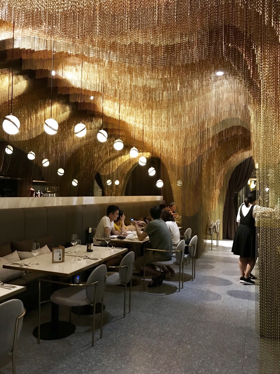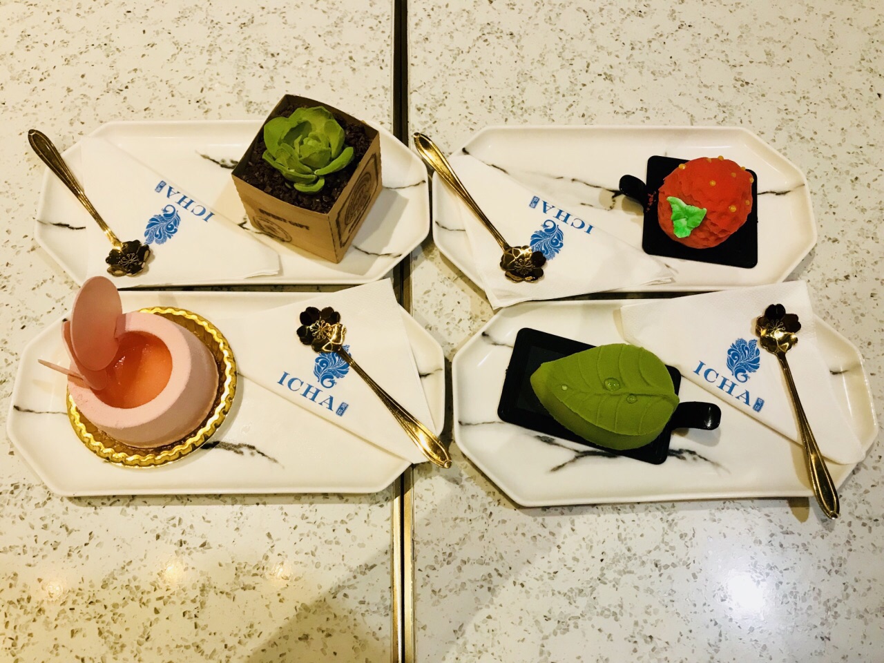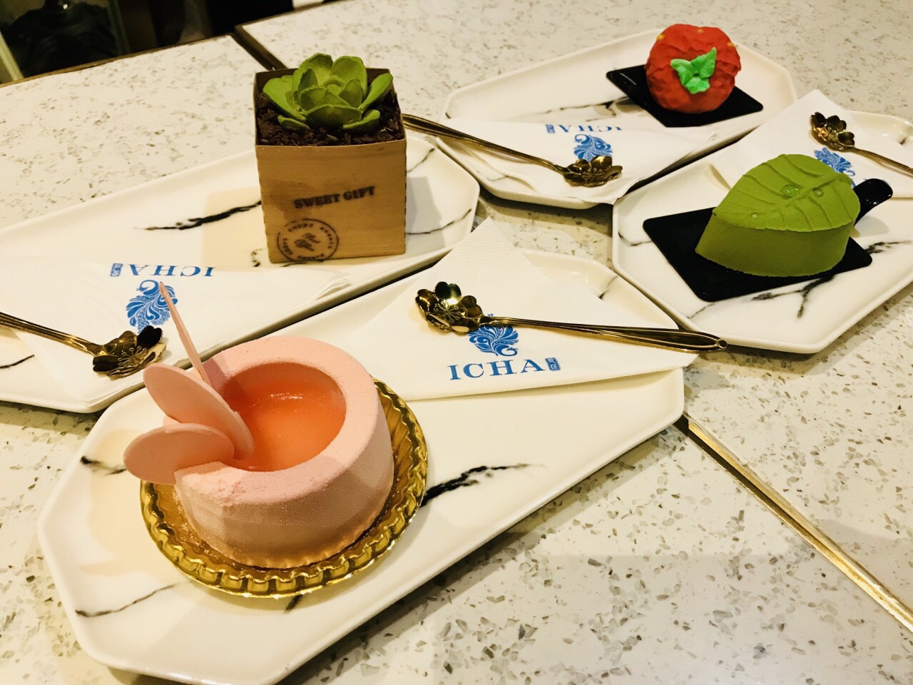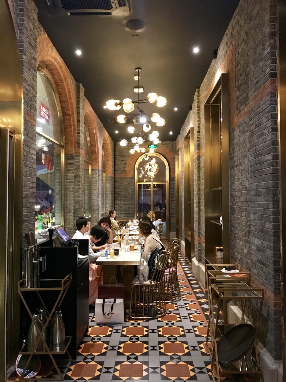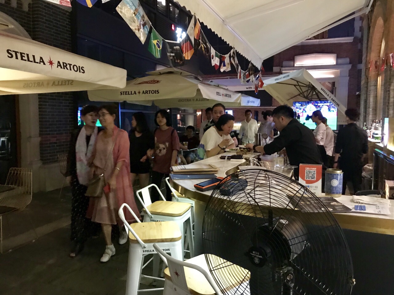 晚餐后逛到这里,丰盛里地铁12号线出口。周日晚上人气很旺,环境优雅小资时尚。室内室外都挂着大屏吸引球迷。 室外虽然有大落地扇,仍觉得有点闷热,于是走进室内长廊处入座。 点了4杯饮料和4种仅有的甜品,果汁非鲜榨,抹茶、樱花、草莓甜品和提拉米苏味道不错。 小贵。