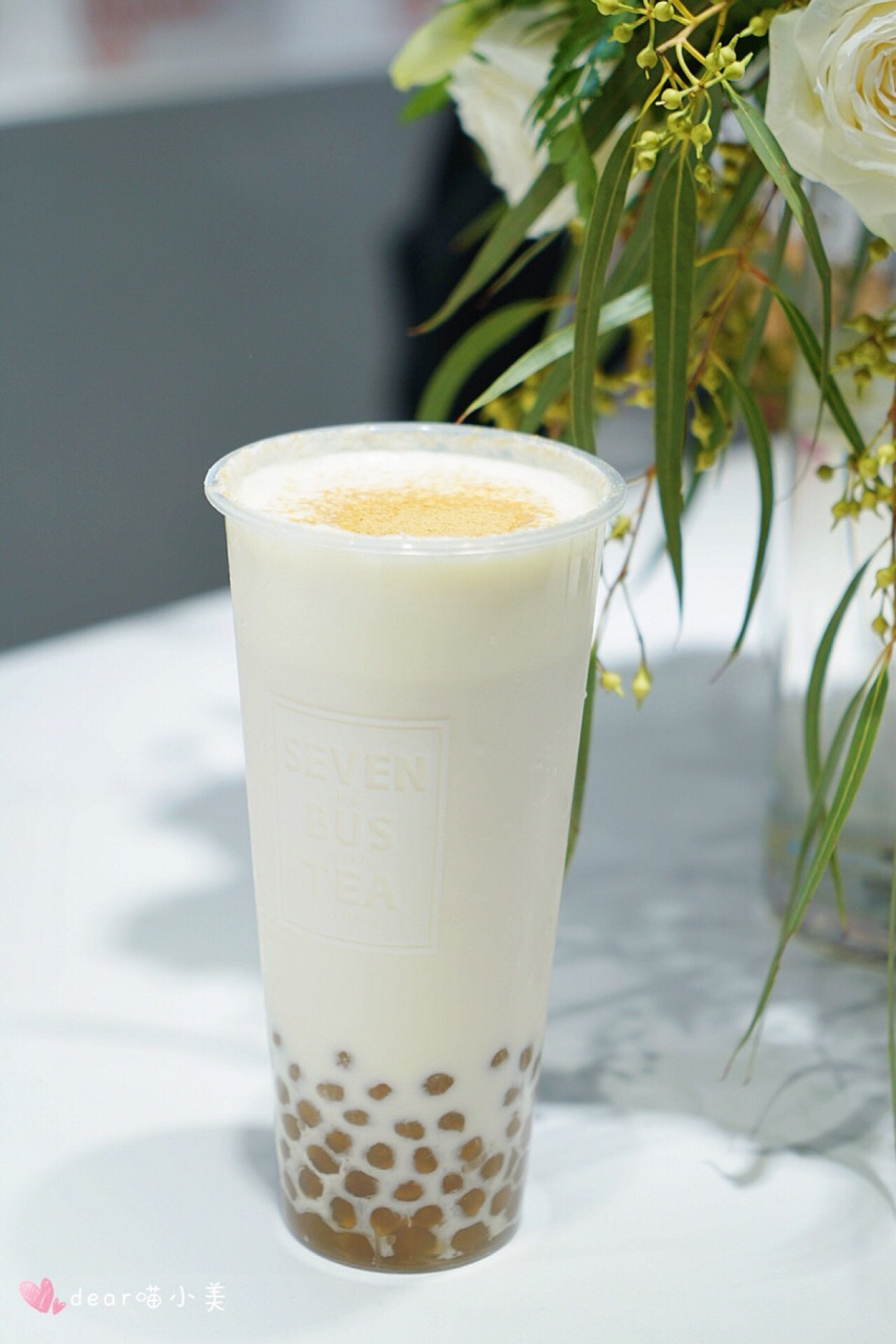 美岁三楼的sevenbus,依旧是性冷淡路线的小清新风格。 微咸的豆乳奶盖满满品味,浓浓的豆香奶香交融蔓延,滑润细腻,奶茶醇香甜美,底部的珍珠q弹劲道很好吃。 黑糖珍珠鲜奶,融着浓醇黑糖的手作珍珠是亮点,这款适合多冰,摇晃均匀,慢慢品味黑糖特有的甘甜,再细细咀嚼香滑的珍珠,十分给人幸福感的一款饮品。 桃桃优酪则是比较小清新的出品,清新的桃子果香融进香甜的优酪,酸甜度刚刚好,微微沙冰的质感,入口即溶的柔美,都十分讨喜。 牛油果夏乐多,相比起大多数牛油果饮品的醇厚,这款显得清淡不少,但是牛油果的沁人只增不减,喝起来很舒服。 冰萃茗茶,没有其他款式那么让人眼前一亮,却是最耐喝的珍品,冰萃的方式更能凸显茶叶本身的醇度和清香口感,十分柔和、悠长。 菜单升级后的sevenbus,品种精简不少,体验优秀很多。这家火爆的饮品店,倒是给有些冷清的美岁城增温甚多呢哈哈~