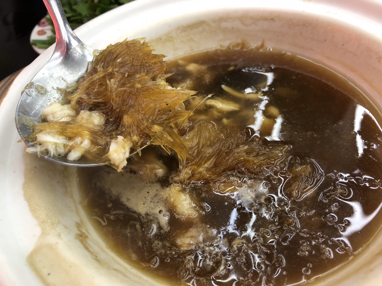 到唐人街很多燕窝鱼翅,在街边看到这家东方燕窝人满多的,一看还是老字号,那就试试吧,燕窝有血燕碎燕之分,反正价格等级不同,点了适中的价格,燕窝有冷有热,还配有生鸡蛋蜂蜜和银杏,滋补一下,另外还有鱼翅,也点了一份尝尝,看得见的鱼翅,一份价钱一份货咯。