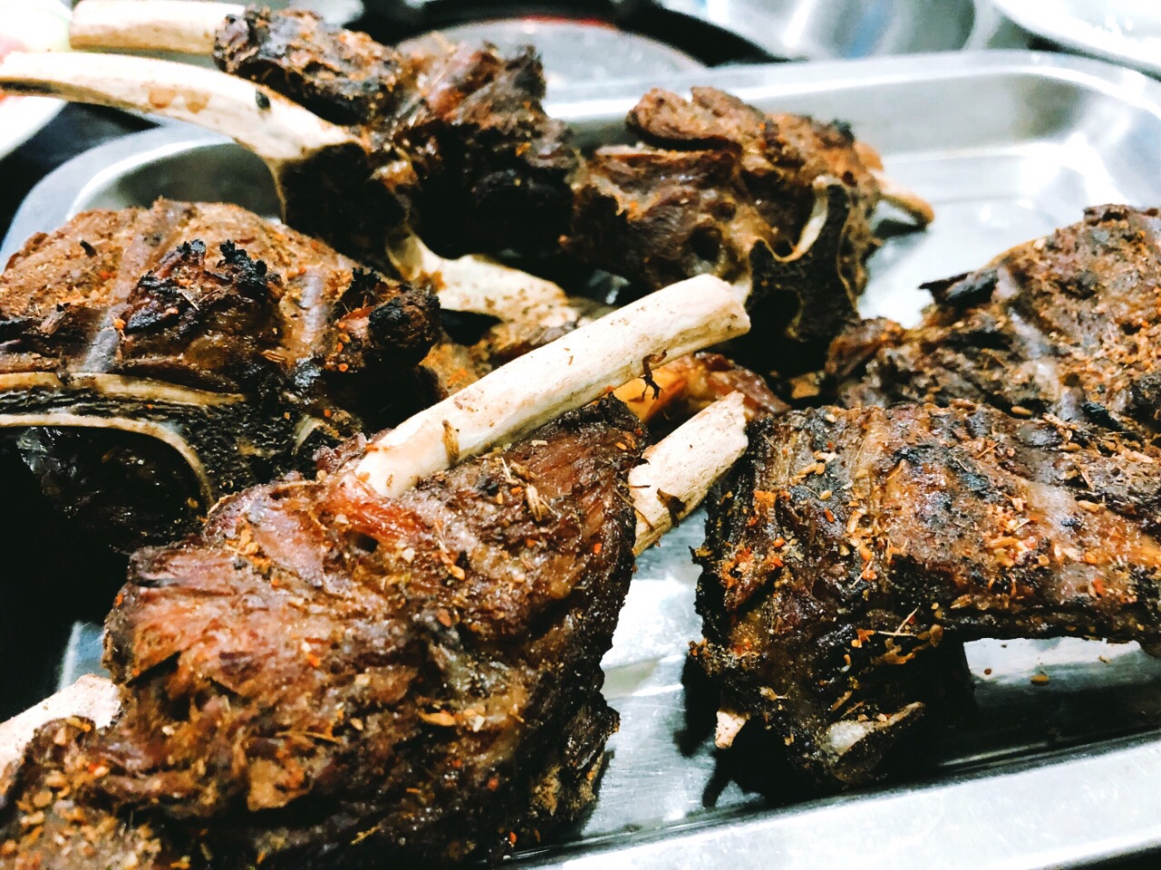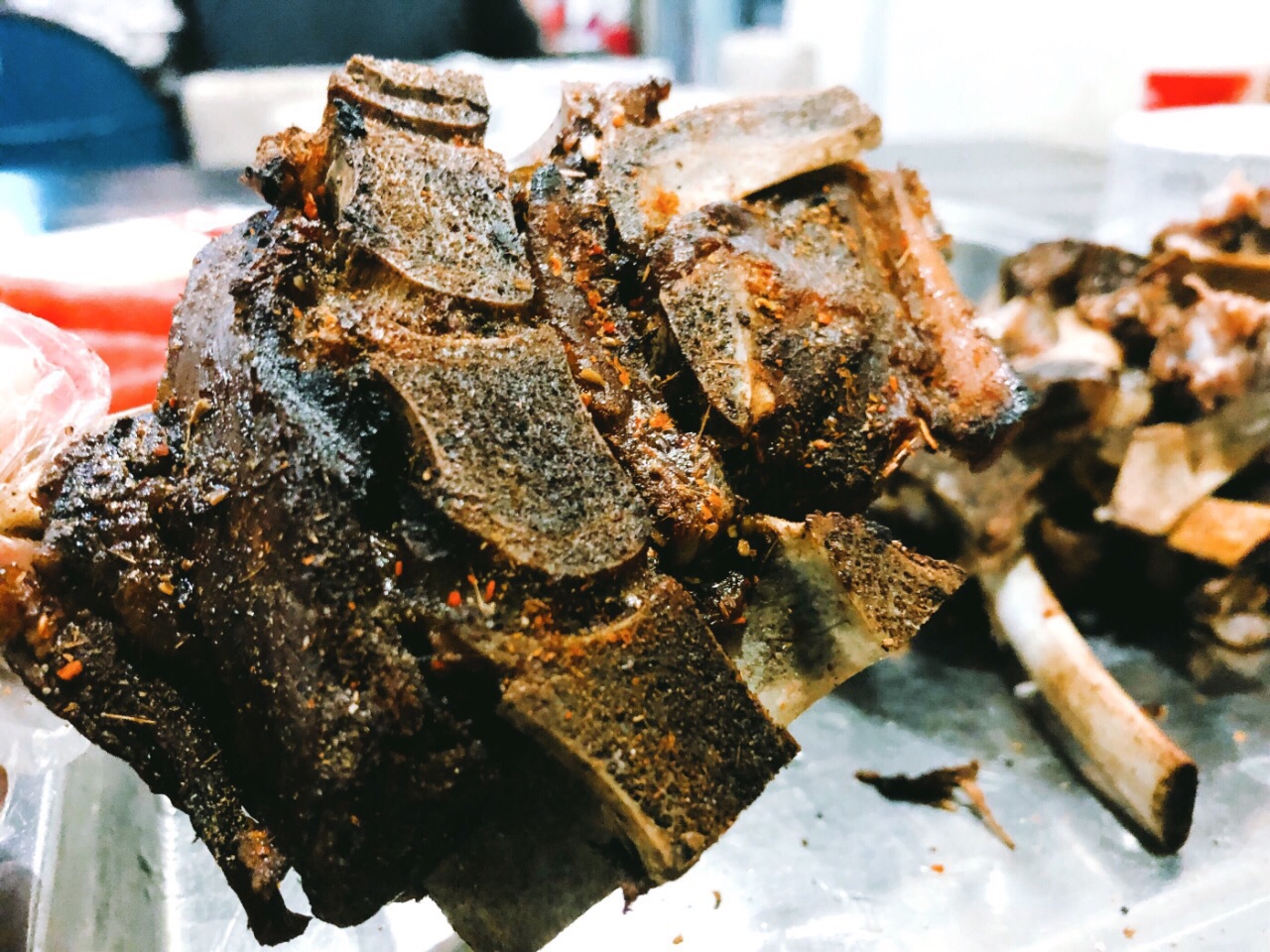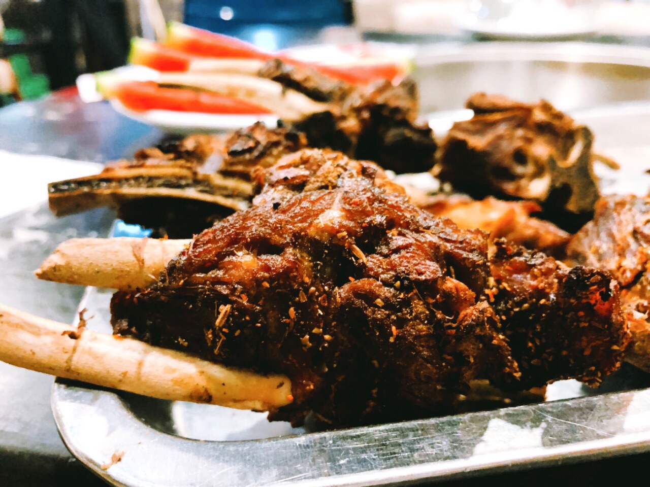 貌似很有人气的羊蝎子小店,分店很多,净土胡同的是总店。店内不大,很紧凑,却五脏俱全,人气也非常旺。 满屋子羊蝎子味道,喜欢的人爱不行,不喜欢的可能会觉得膻味儿太大。三五老友推杯换盏,聊生活,感觉这才是接地气的老北京。 烤羊蝎子很快上来了,一份六个。要来手套风卷残云吃起来,味道很赞,火候也恰到好处,外焦里嫩。量大味道好,不负名声。 老板还送了西瓜果盘,刚好可以解解腻。