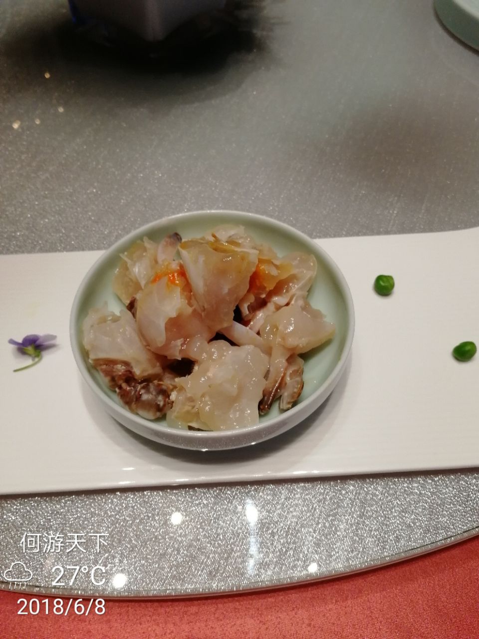 菜品卖相蛮好。红膏枪蟹肉质鲜嫩,不咸不淡,果盘色釆鲜艳南苑环球酒店甬苑中餐厅在宁波市鄞州区的鄞县大道1288号,南苑环球酒店的二楼,这是一家五星级酒店的餐厅,什么都高大上,价格也有点贵。菜品卖相蛮好。红膏枪蟹肉质鲜嫩,不咸不淡,果盘色釆鲜艳。