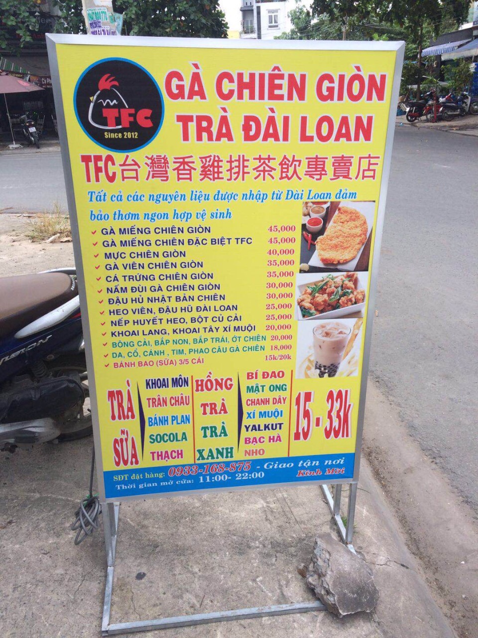 TFC2台湾香鸡排茶饮专卖店, 越南语名字不知道怎么打。 (,,•́.•̀,,)算是路边看起来还OK的一家店铺了吧。 有鸡排啊,小吃啊, 也可以点饮品喝,ꉂ ೭(˵¯̴͒ꇴ¯̴͒˵)౨” 这边中午超热吼。 (ㅇㅅㅇ❀)梅子绿茶还不错喝。 ฅ(*ơ ₃ơ)ฅ" 有小桌子可以小憩。 地址就在duong46路口那里。