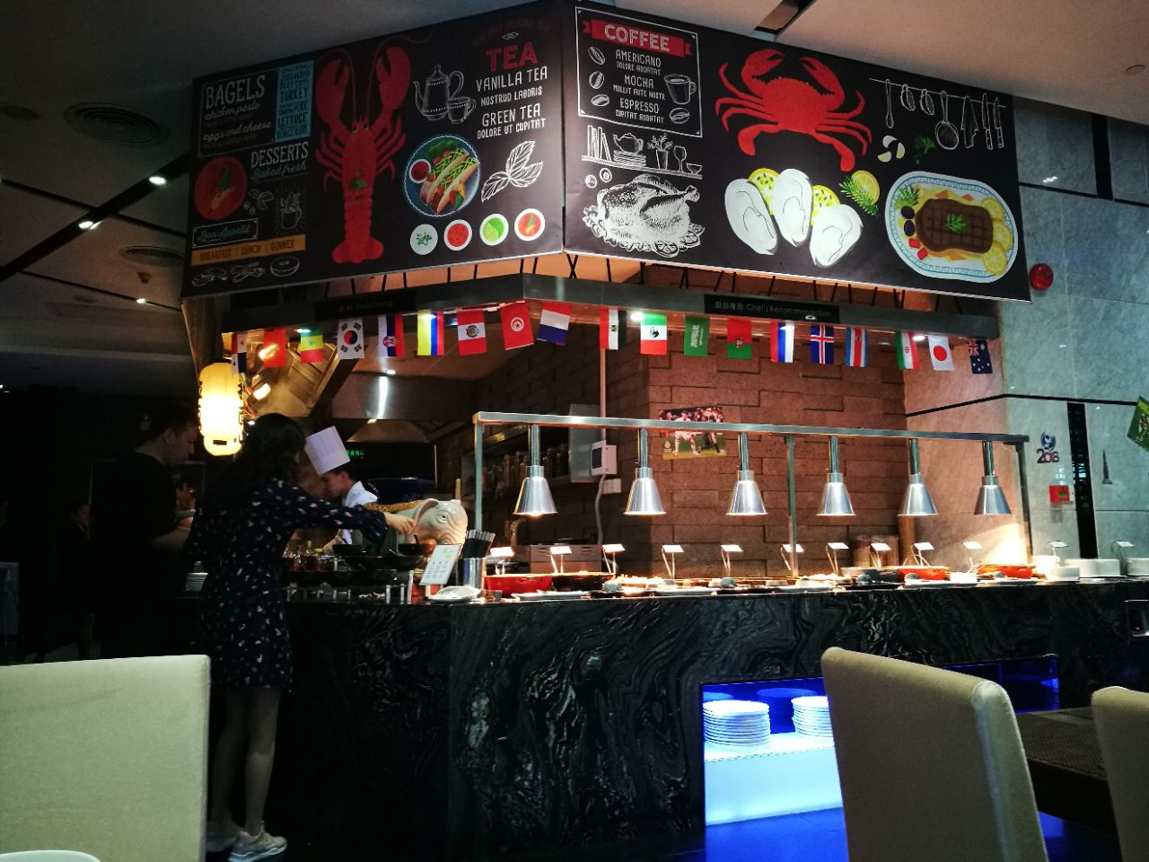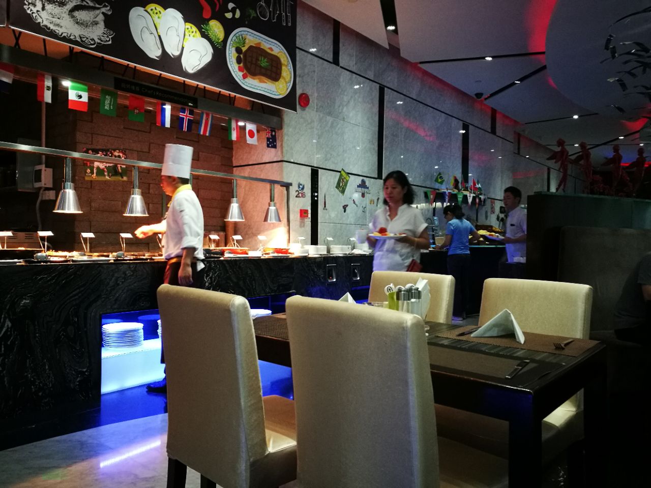 面积不是太大,但是布置得比较温馨。餐饮的种类比较丰富,无论是中餐还是西餐。饮料的种类也还比较丰富位于酒店的一楼,大堂的左边。面积不是太大,但是布置得比较温馨。餐饮的种类比较丰富,无论是中餐还是西餐。饮料的种类也还比较丰富。