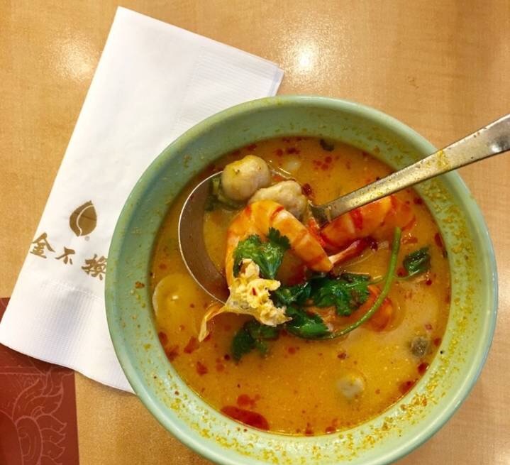 金不换泰国餐厅,美食推荐!香芋黑糯米,特别惊喜,黑糯米特别多,香芋也特别大一颗一颗的,黑糯米甜度适中,配的是椰汁,一点都不甜,和黑糯米中和的很好,暖暖的,好好吃;冬阴功汤,简直太辣了,我朋友觉得可好喝了,我尝了尝,还是挺正宗的,就是对于我来说太冲了点,感觉是香料放的很足诶~