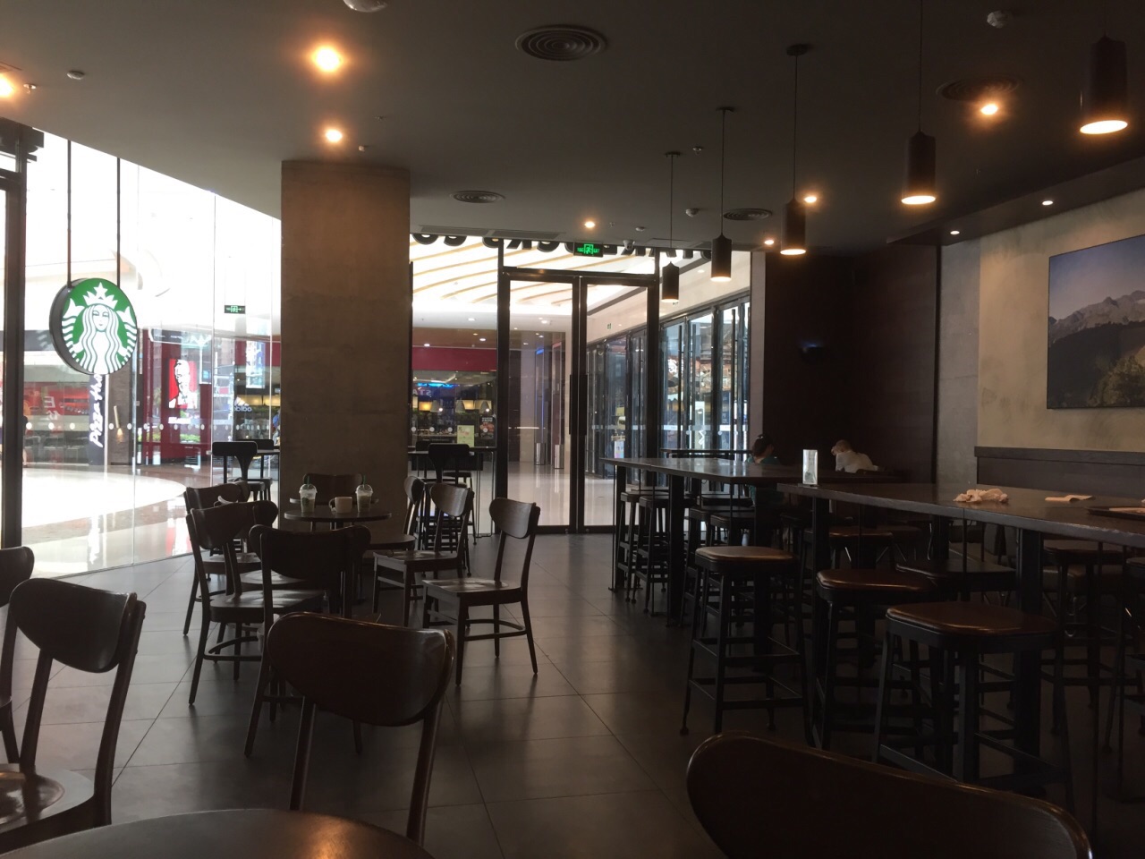餐厅不小,灯光有点暗,当时客人也不多,但是真的是一个歇脚上网的好地方。见到星巴克就进去喝杯咖啡在万达广场逛了一下,然后去找吃的。见到星巴克就进去喝杯咖啡。餐厅不小,灯光有点暗,当时客人也不多,但是真的是一个歇脚上网的好地方。