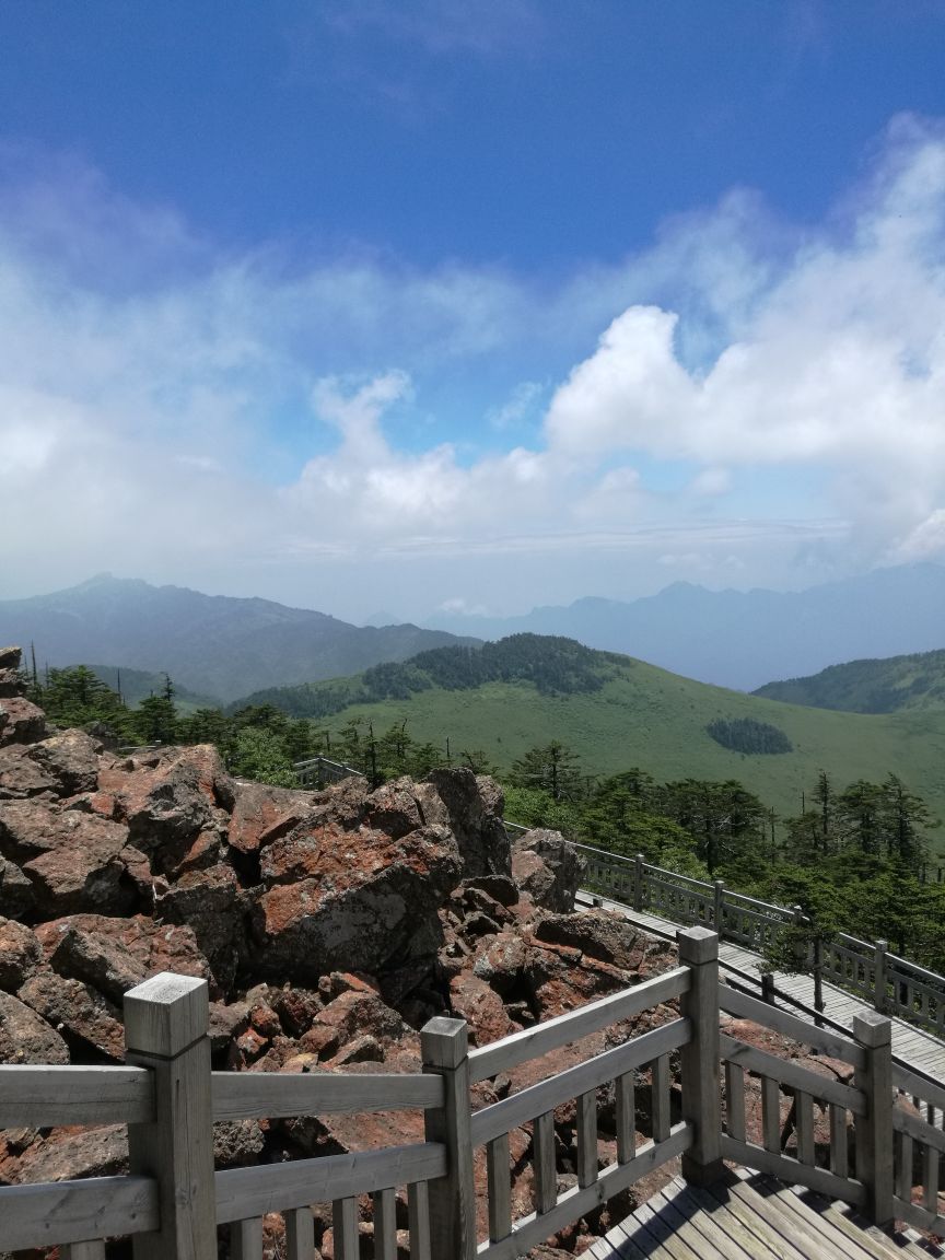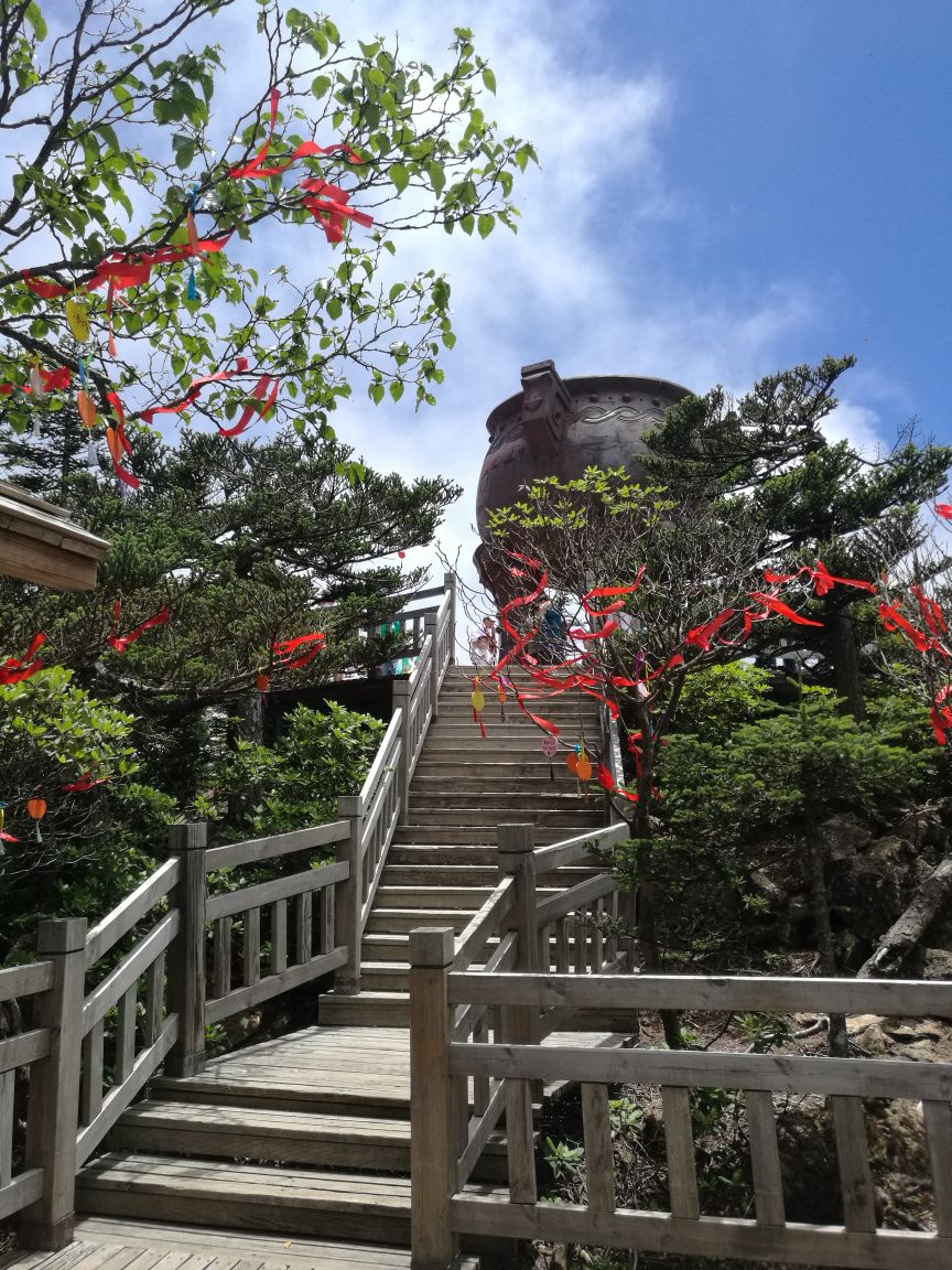 一八年7月7日我们耒到景区神农顶,一下车看到醒目的神农顶,和华中屋脊的地标,游人相继照象留念,开始前行,一直走到青云梯,可看到一片停车场,向前行不远处就是登顶阶梯,游人开始登顶了,我们十点十分开始登顶的第一步,那天天气真好,蓝天白云,不冷不热慢慢的到了499步,前行慢的匀速前行,到了699,999,1699这时人很累,我们继续前行,2099,这时前行却实要有毅力,我们速度更慢了,爬到2999步时已是中午十二点钟,用时两个多小时。到顶的心情无比高兴看到海拨三千一百零六点二的数字,我们挑战胜利,感谢那些鼓午我们的年青游客,一路上给我们加油。我们看到了那个大鼎,这才是真正的神农顶,顶上的风景太美,加上蓝天白云美得无法形容,美不胜收。整个顶上的游客兴致很高。中午一点十分我们开始下山了,由于我们的高兴和激动忘记了我们一路的累和辛苦。下午五点钟回到驻地特色农家。