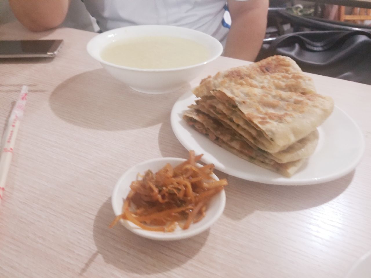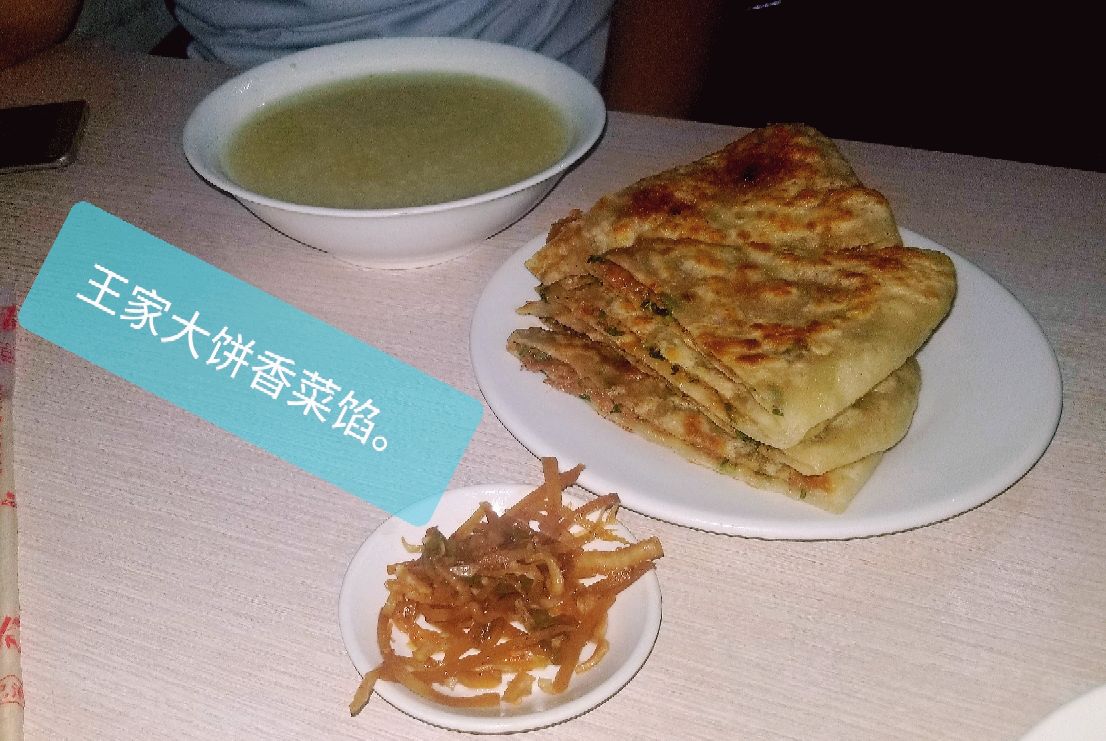 很开心,从我酒店步行不到7分钟。就走到浙江,名气很大的店。但是这个店外观看起来实在是不起眼。真的没想到分量这么大,两个人点俩个饼子。一个香菜肉饼,一个是青椒肉比。燕子是七分肉,三分菜。做法传统正宗,味道很好,一个大饼送一碗小米粥。温馨提示,两个人最好的一个肉饼。能不能品尝孔府周边的其他美味