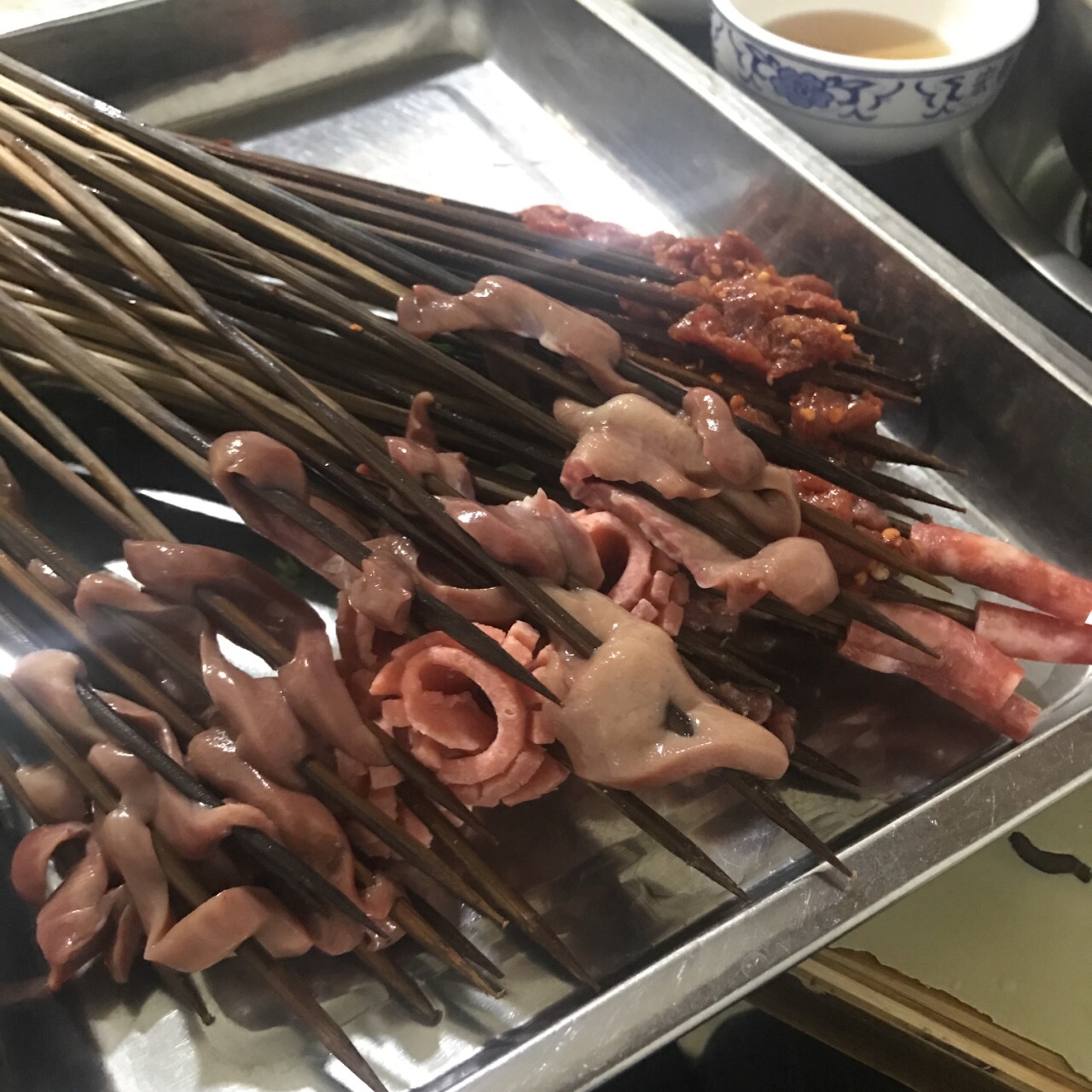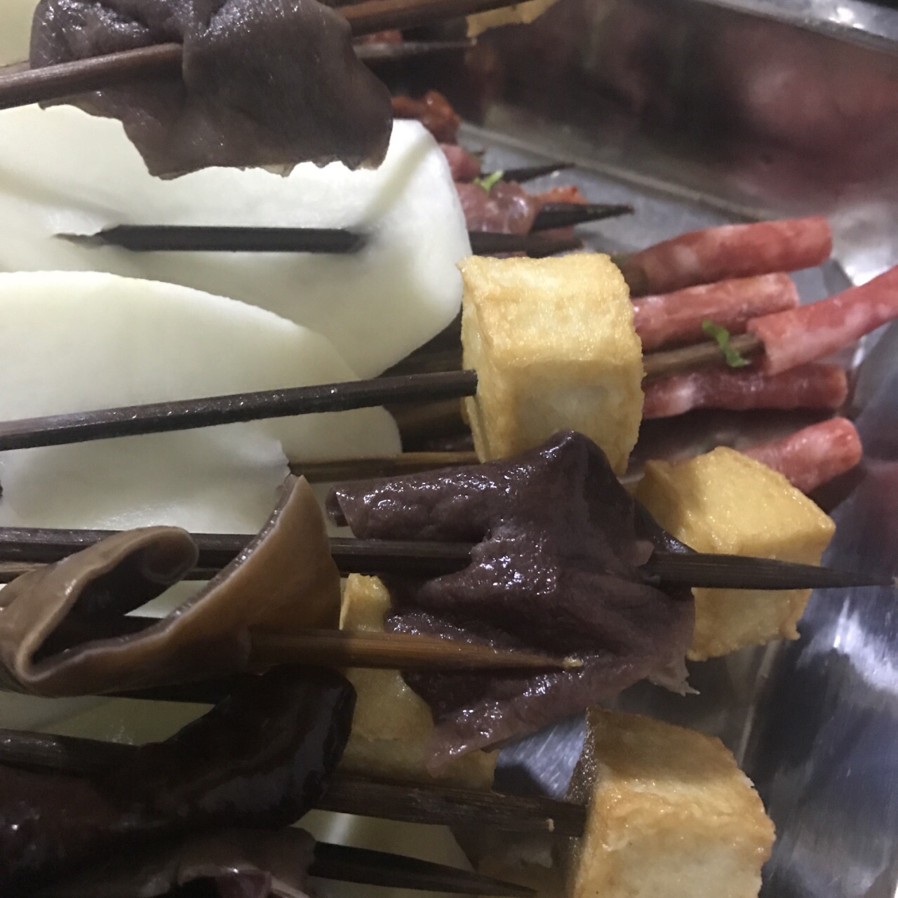 隐藏在一个居民区里,跟着导航走了一会儿,沿途经过一条美食街。坐地铁的话应该是2号口,永辉超市那个口出来。 店面很小,晚上10点左右就不营业了,想吃宵夜的打住。串串自取,不过这的特色是串串好小一个,一丁点。另外加了毛肚、牛肝、酥肉之类,酥肉还不错,外皮能吃出鸡蛋味。牛肝切的特别薄,刀工了得,放锅里涮熟蘸着干碟吃,又香又辣。锅底很香,因为太辣喝了两瓶唯怡豆奶。 来一趟重庆特色总要尝一尝的,可以去,不失望。人均70。
